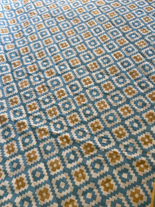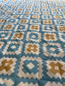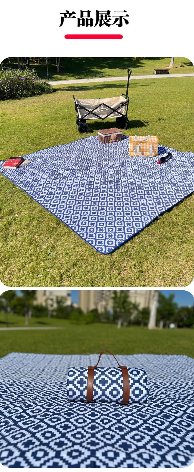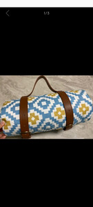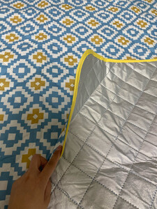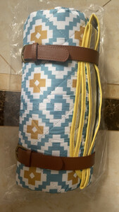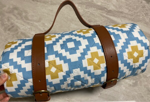 这款野餐垫真的很漂亮,2*2米的尺寸真的有够大,防水效果也不错,比较厚实,有个捆绑带,携带也很方便,就是有一块污渍,不知道什么原因,也不像是使用过。