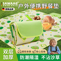 飒望【德国】野餐垫防潮垫加厚户外便携可折叠露营地垫沙滩垫子打地铺 牛油果80*150cm【可围坐2-4人】