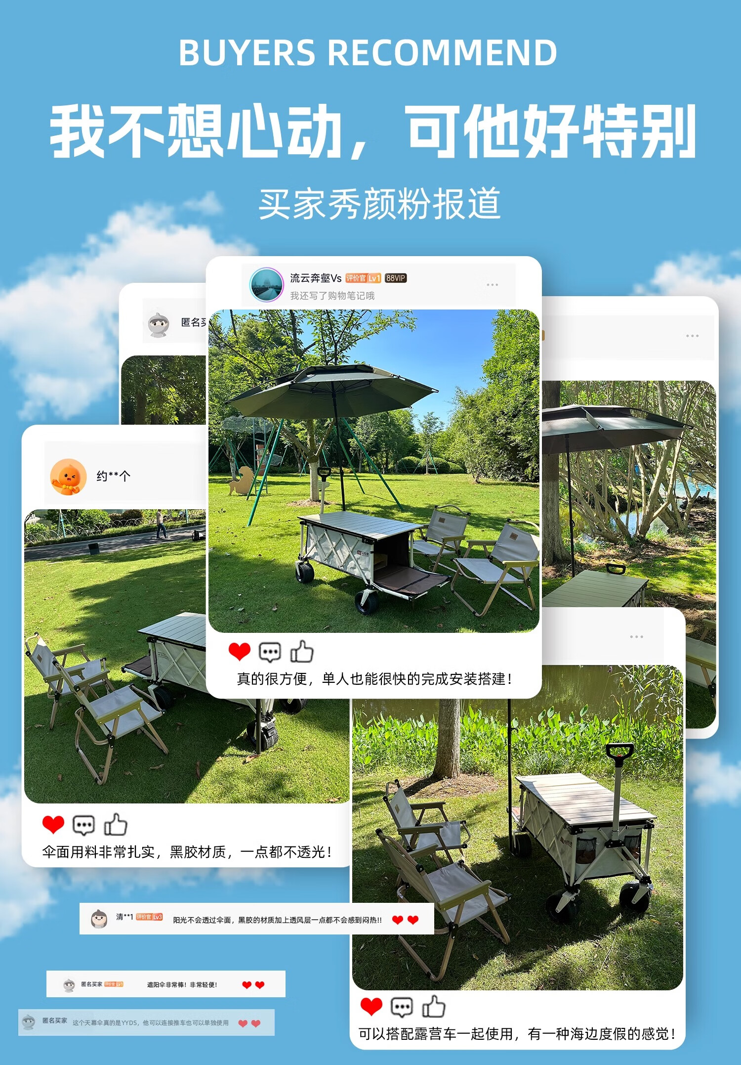 宝贝不错有问题也立马解决了,准备开启摆摊和休闲旅游,客服也很贴心,一直下雨还没用,期待雨后用起