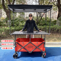 大号露营车摆摊车夜市小推车升降桌柠檬茶餐车营地野餐车聚拢折叠 车(橙)+120*60黑色桌+大号棚(黑)