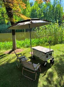 小车不错容量很大很能装,摆摊正合适,家庭露营也方便了,伞真的不错,这样下雨天就有安全感了,有不懂的问题客服.