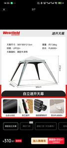 还没用,入了俩门帘。以下凑字数。这款Westfield户外穹顶天幕在防晒和搭建便利性上表现突出。黑胶涂层能有效阻隔紫外线,防晒效果显著。采用全自立速开结构,单人即可快速完成搭建,省时省力。穹顶设计不仅抗风性更佳,还创造了立体遮荫空间,活动不受支杆阻碍。面料具备防雨性能,应对天气变化更从容。整体轻量便携,无论是公园野餐还是营地露营,都是提升舒适度的实用装备。