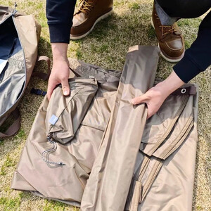 防水效果:很好,疏水性布料 适用场景:露营用,草坪,公园 容纳人数:5-8人,和家人或者朋友局都够用 透气效果:未实地用过,还不清楚 展开类型:与宣传页一致,四周长钉拉着 便携性能:不错,全收起来背着或者放车里都很方便,就是蛮重的