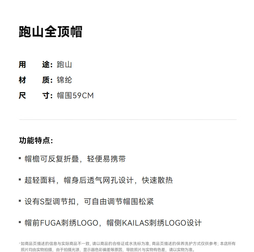 产品颜色:实物颜色无差异 尺码大小:均码使用正好,大小可调 适用场景:夏季户外运动跑山 其他特色:帽檐有轻量化处理,不知道是否影响使用。细节处理的很好,放心购买放心用。