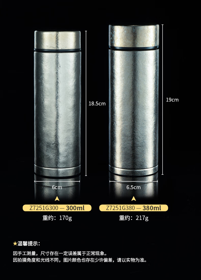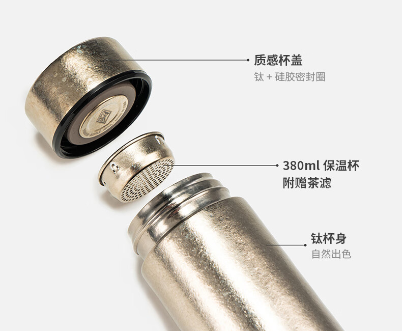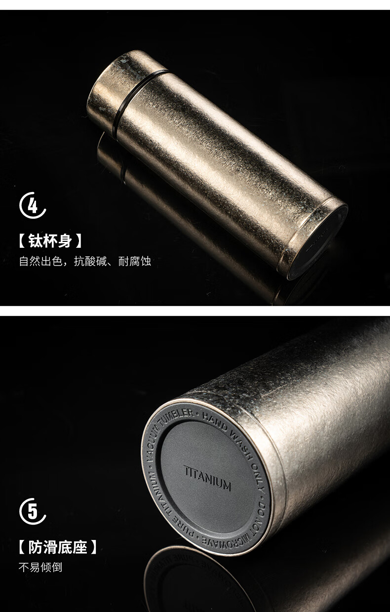 送朋友的,大小合适,携带方便,是不是纯钛,不会鉴别,无从考证,重量是真的轻,底部是橡胶的,防滑。带有滤网,喝茶方便,保温效果一般。