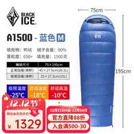 黑冰(BLACKICE)新款【A系列信封式羽绒睡袋】成人户外露营单人鸭绒睡袋可拼接 (新标准)A1500/蓝色 M