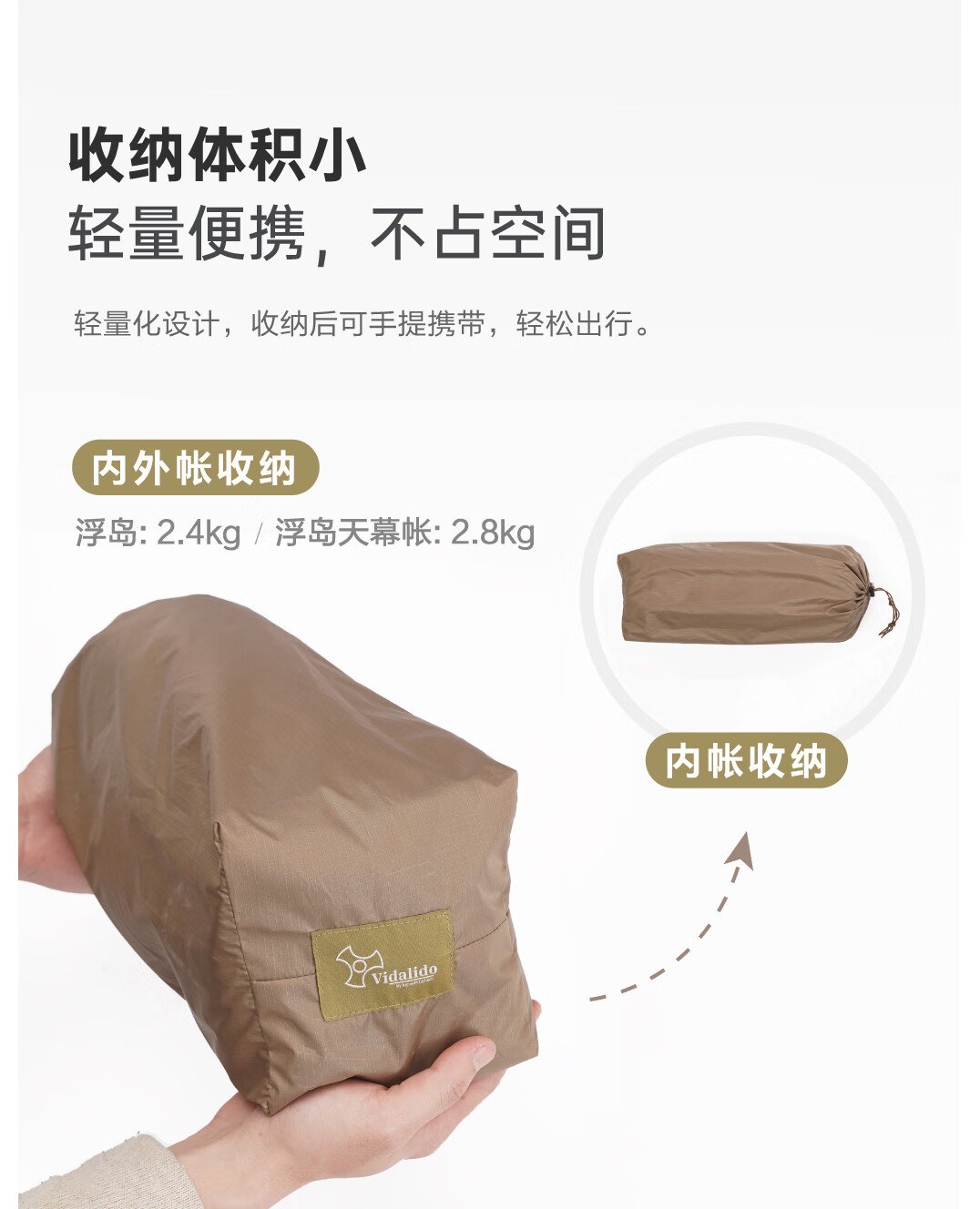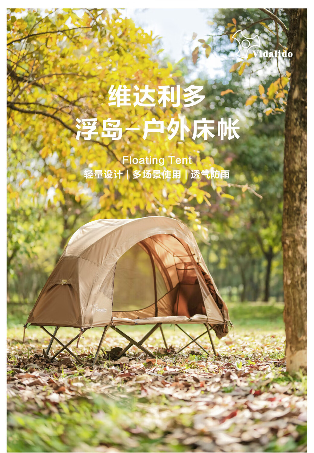 vidalido维达利多户外单人露营床帐浮岛行军床午休铝合金超轻折叠床便携款 浮岛床帐黑色(含内外帐)