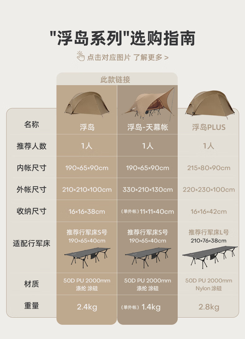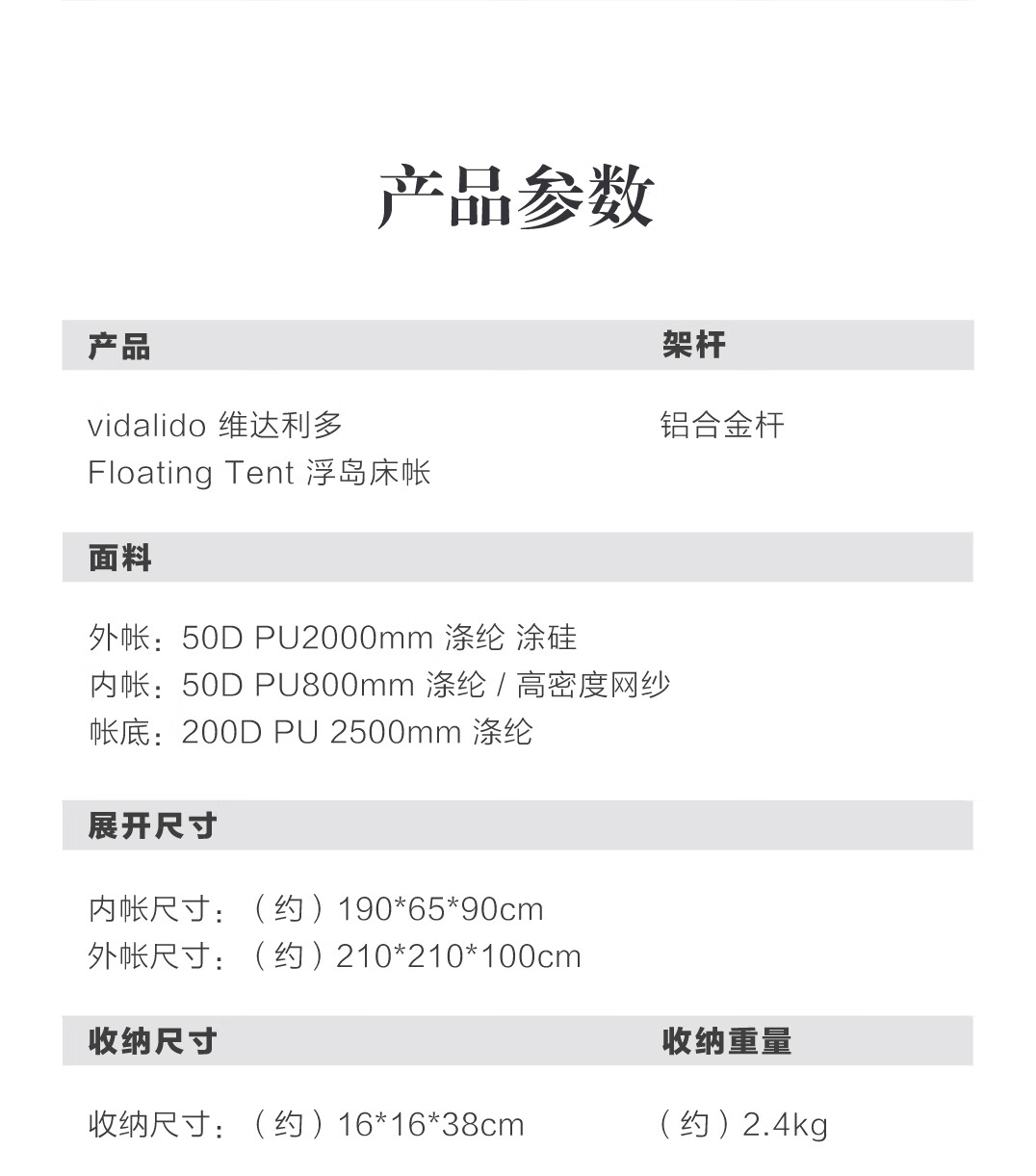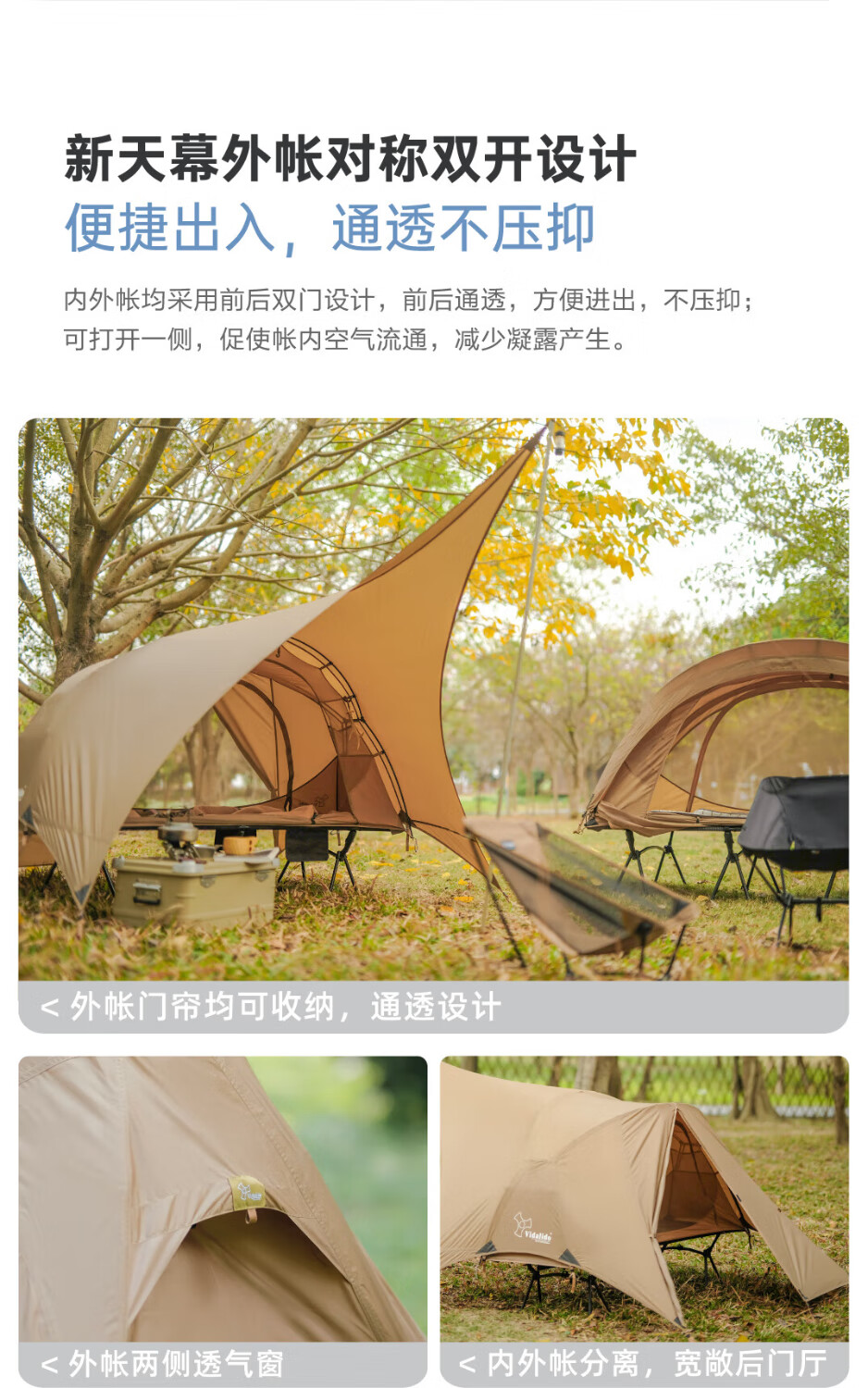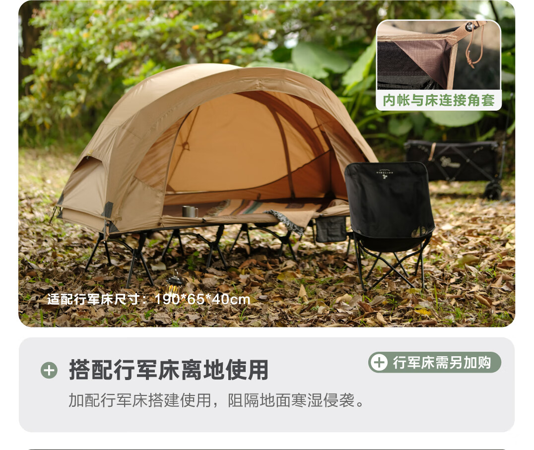 单买了床帐和天幕,一样可以套下别的品牌的行军床非常的nice,质量完全可以放心,轻量化单人solo神器!!