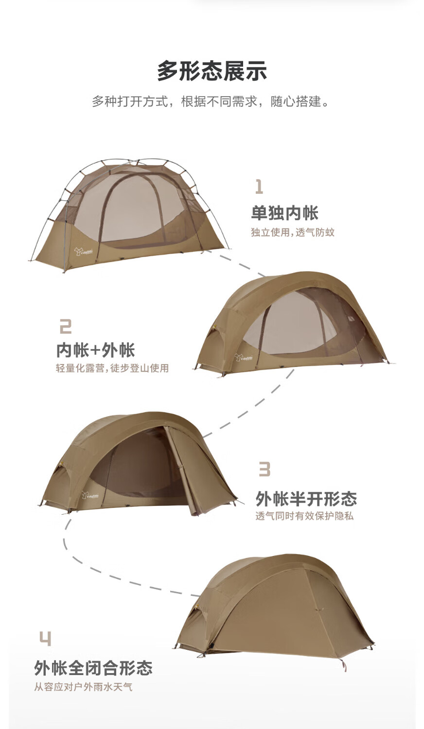 一个人摩旅的时候用起来很方便,搭建容易,随便什么地方都可以搭建。