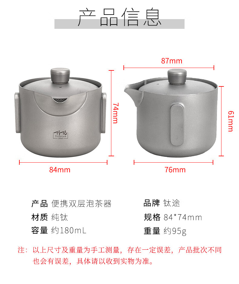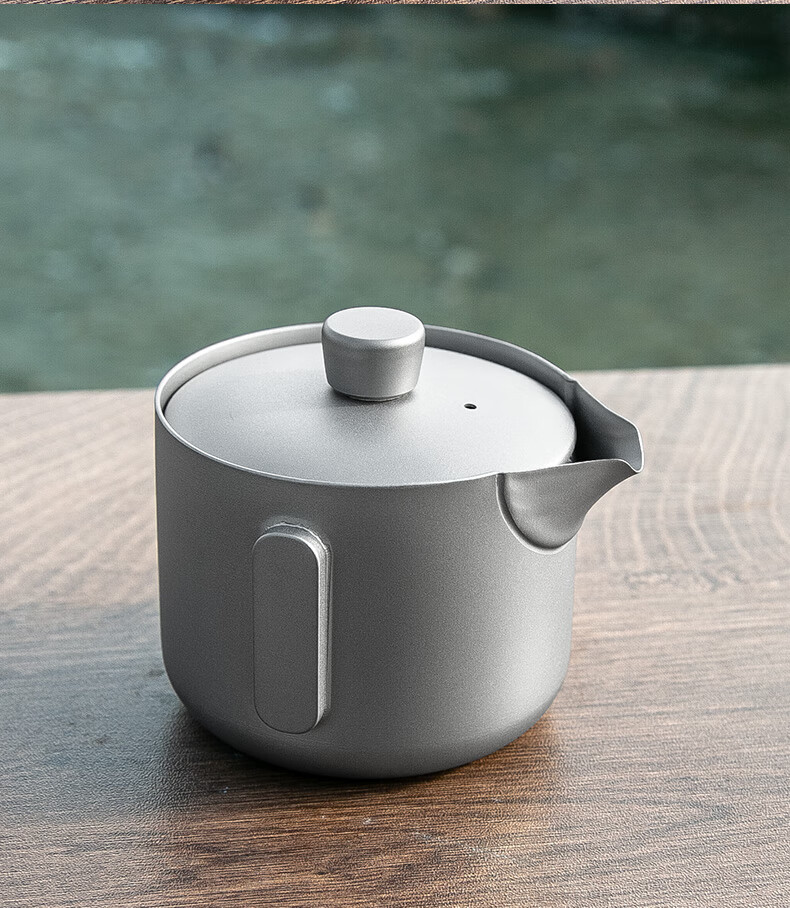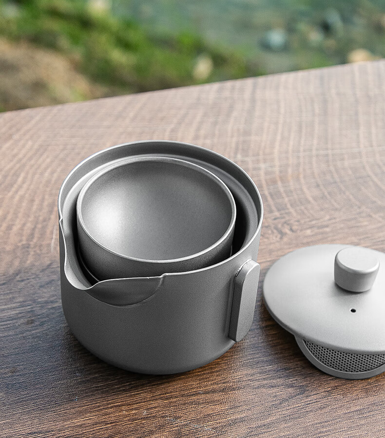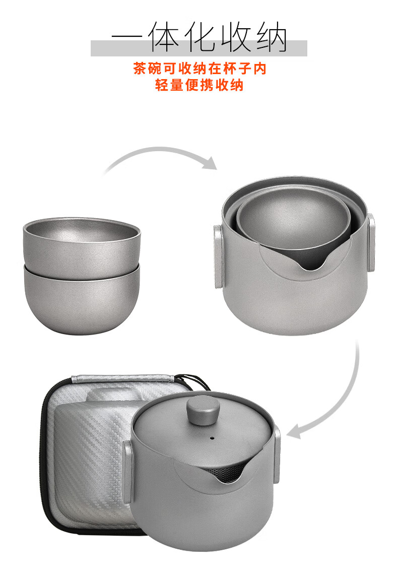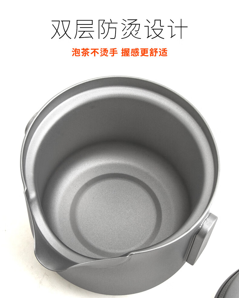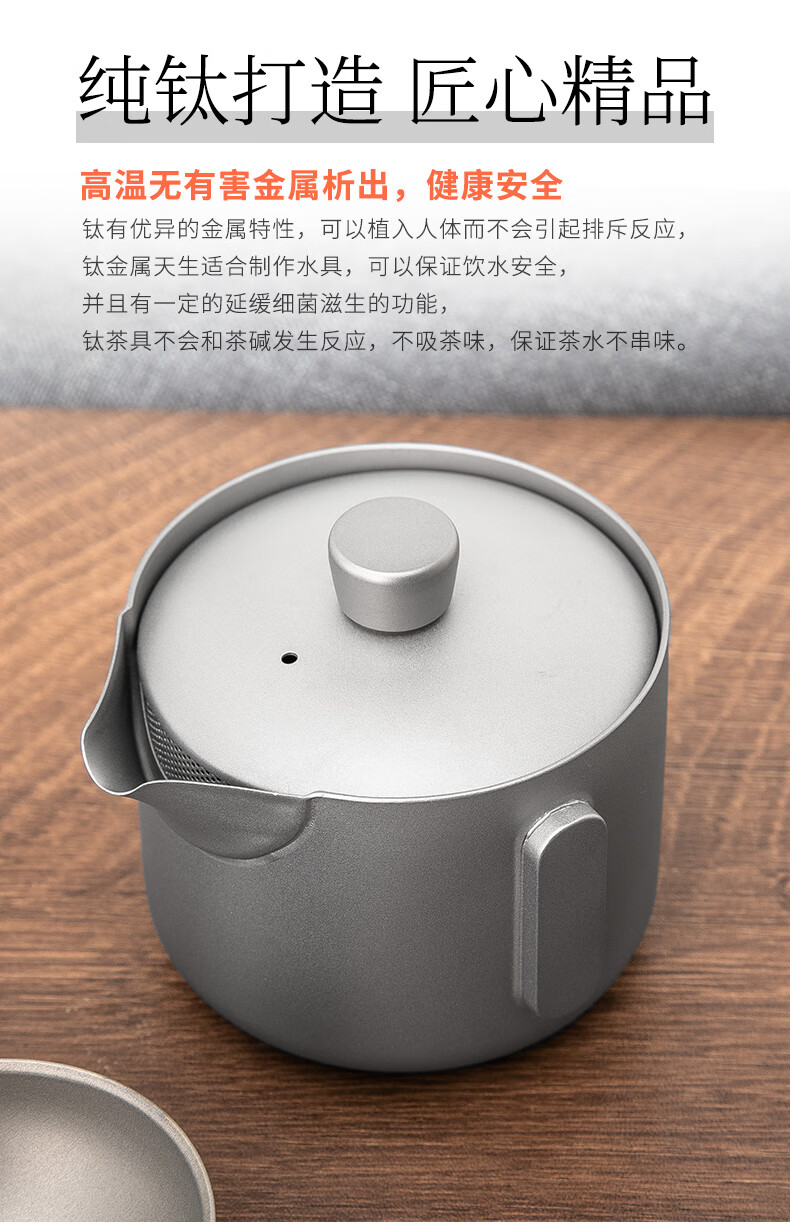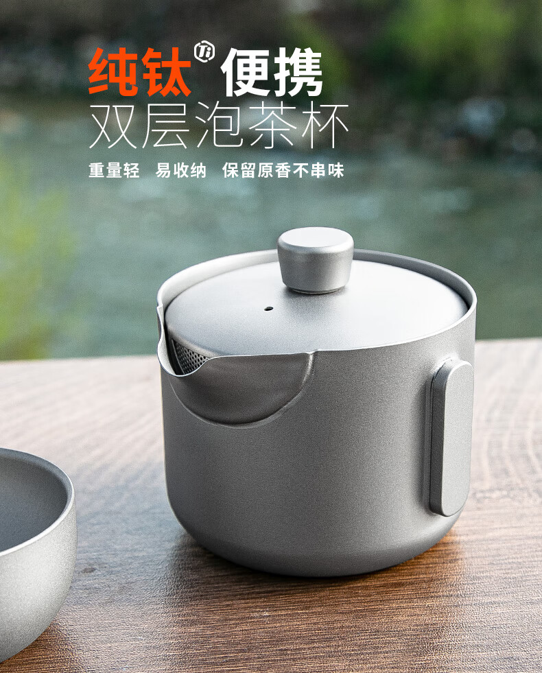 Ti artisan钛工匠纯钛户外茶具套装旅行野营便携泡茶器双层防烫泡茶钛杯 一壶二杯泡茶器礼盒装【磨砂款】