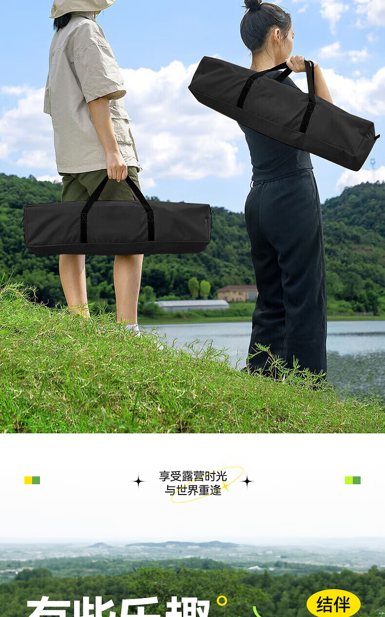 随灿 牛津布户外露营收纳袋天幕折叠桌椅帐篷床垫杂物鱼具收纳背包 收纳袋60cm*31cm高24cm【黑色】