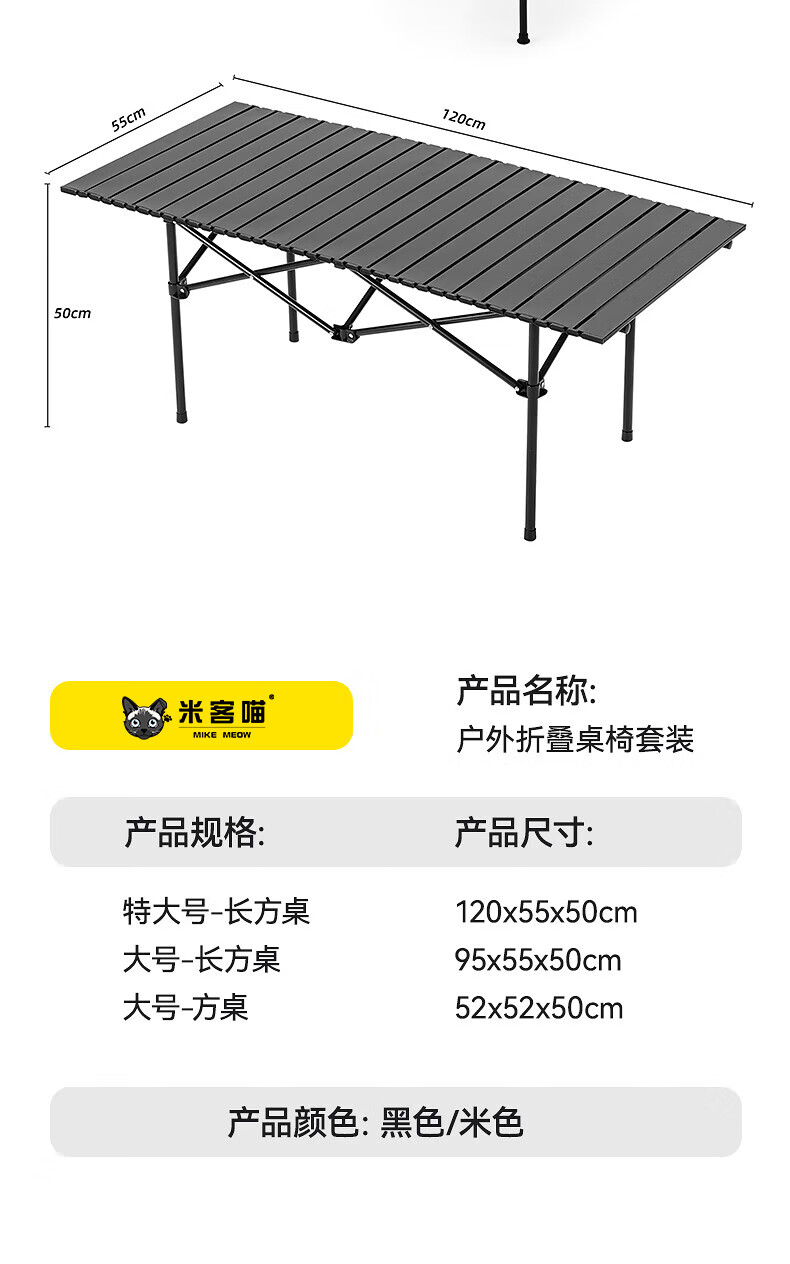米客喵户外露营全套装备桌椅 折叠蛋卷桌克米特椅 野餐铁长桌椅套装 五件套折叠桌椅收纳袋-只含袋子
