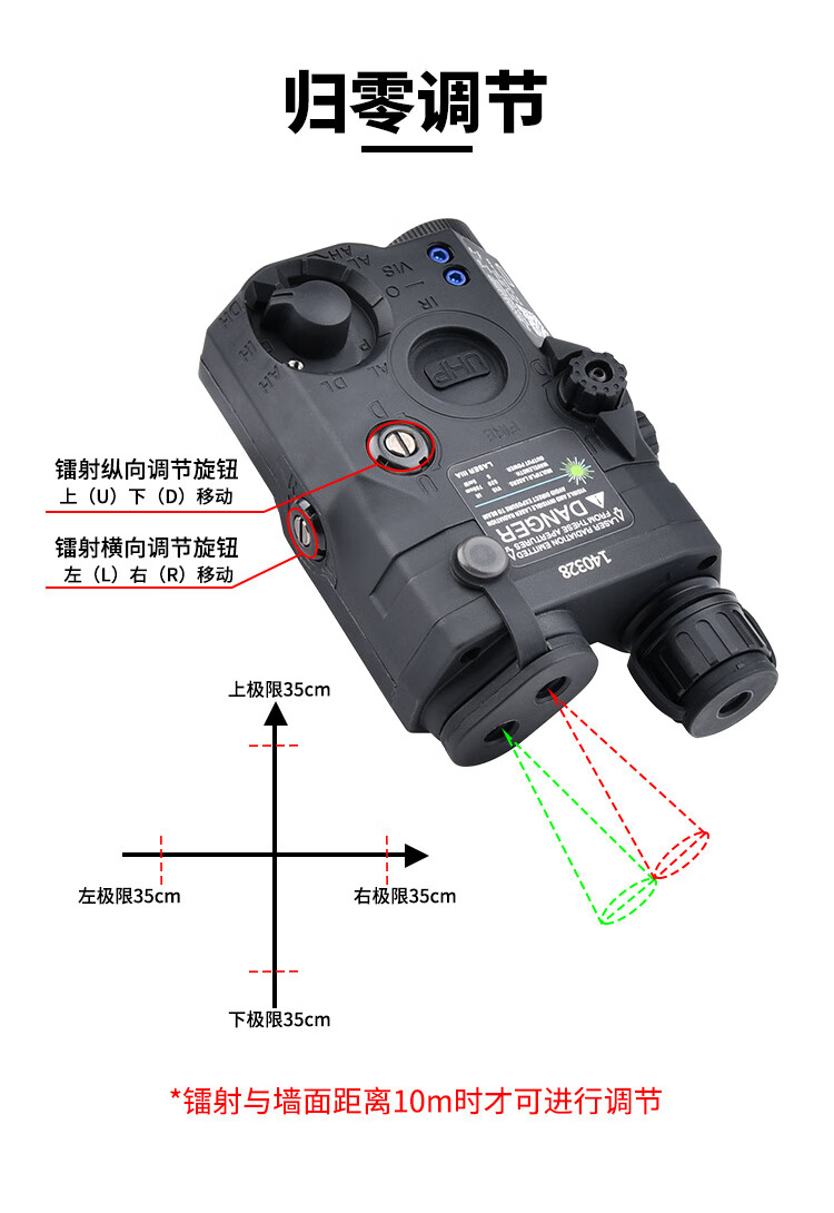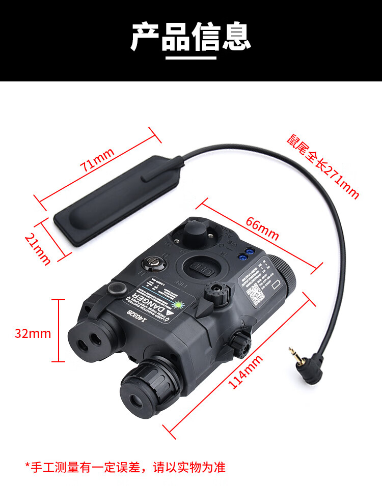 DBAL-A2多功能战术盒鼠尾可调镭射激光手电照明可归零电池盒配件 DBAL-A2黑色绿激光+手电+鼠尾