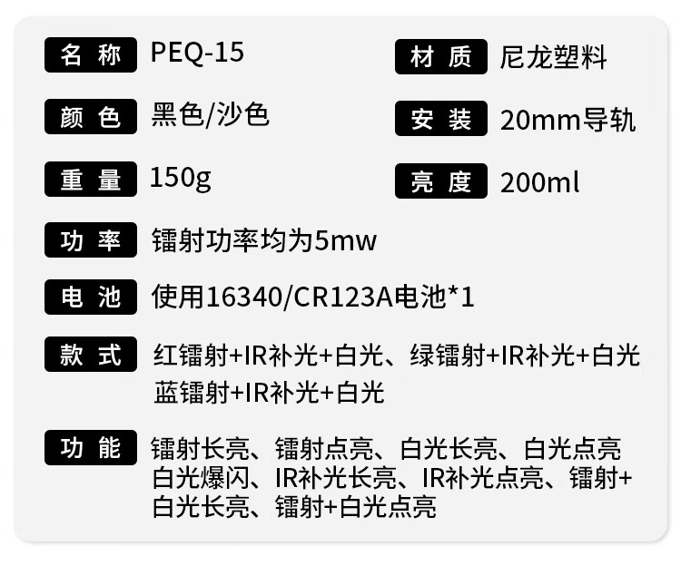 VMASZ PEQ15镭射IR激光指示器M600C战术电筒PEQ电池盒peq15战术激光灯 黑套餐(绿镭射+M600C+双控)