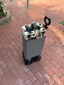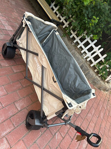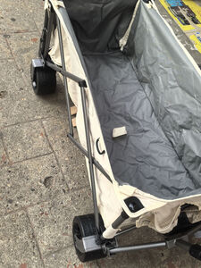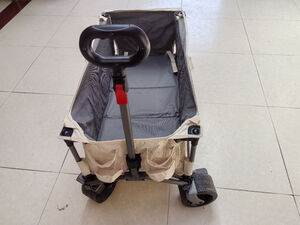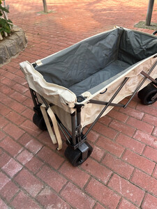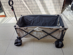 轮子真的够大,特别给力,开合很顺滑,收起来大小也可以,可以顺利的放进后备箱,这种宽轮的偏沉一些,不过拉东西更稳当,去露营公园海边取快递都没问题