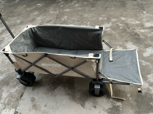 露营车非常棒,舒适方便,简直是户外神器。能装很多东西,轮子宽大,在草地上行走非常方便,拖着重物在草地上走一点也不累。牛津布的设计也非常的结实