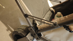 轮子粗,很坚固,有开关可以控制哦,车身结实,这款折叠起来方便,折叠后小巧,收藏不占地,适合露营野餐,也适合放单位搬运货物。