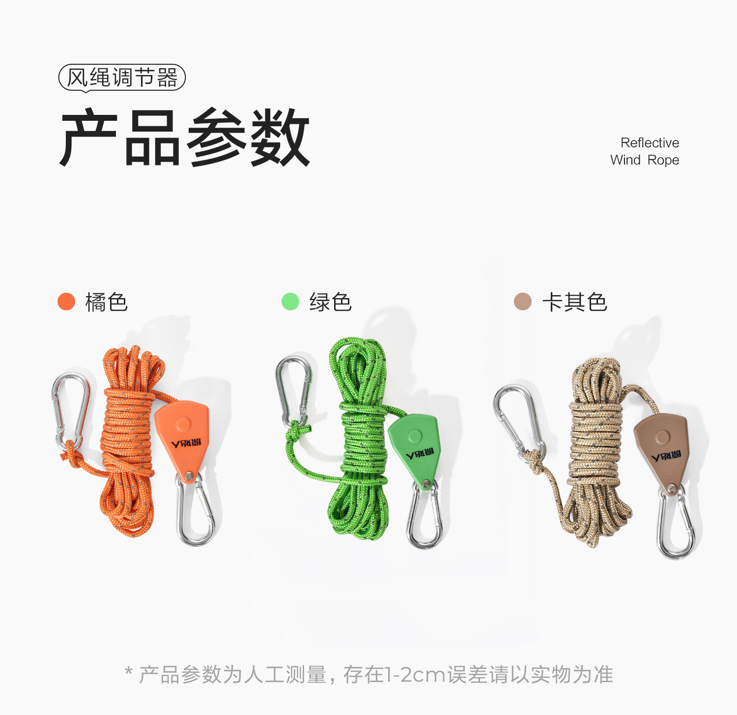 原始人天幕风绳拉紧器户外野营帐篷防风绳反光拉绳快速调节调节扣 【滑轮款】橘色