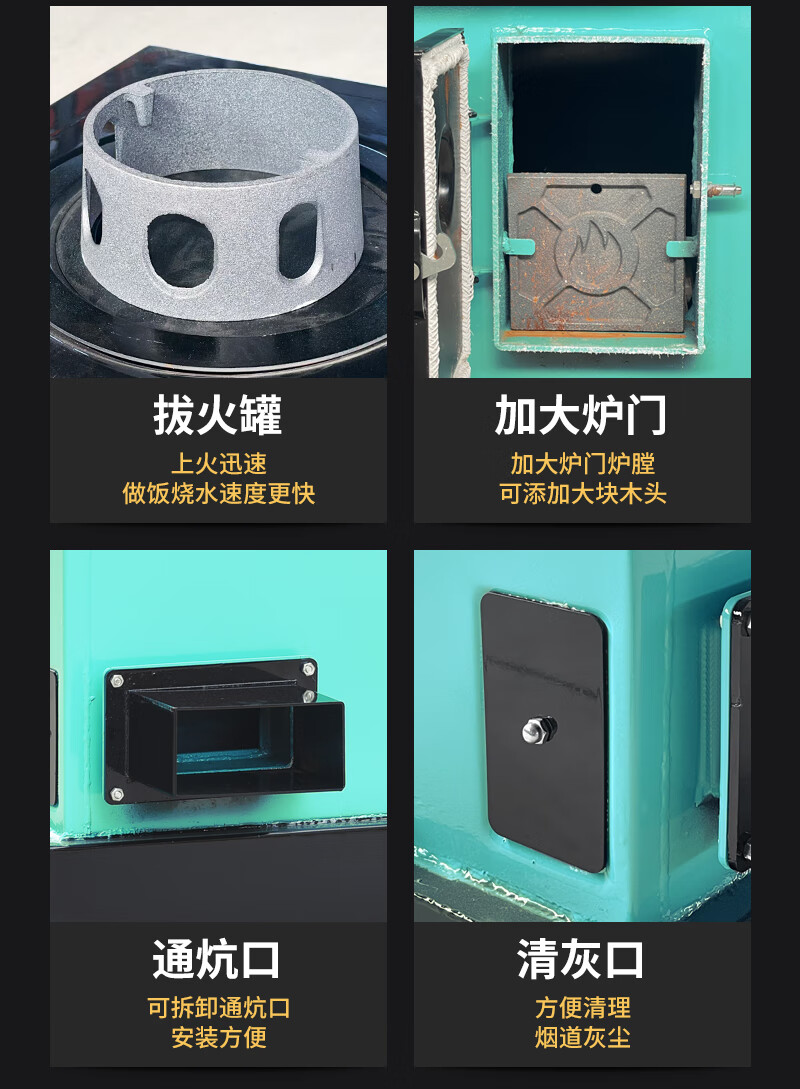 璞灶旺冬季柴火灶加厚加高农村取暖炉烧柴家用节能柴煤两用多功能回风炉 1米圆桌不锈钢(柴火炉)