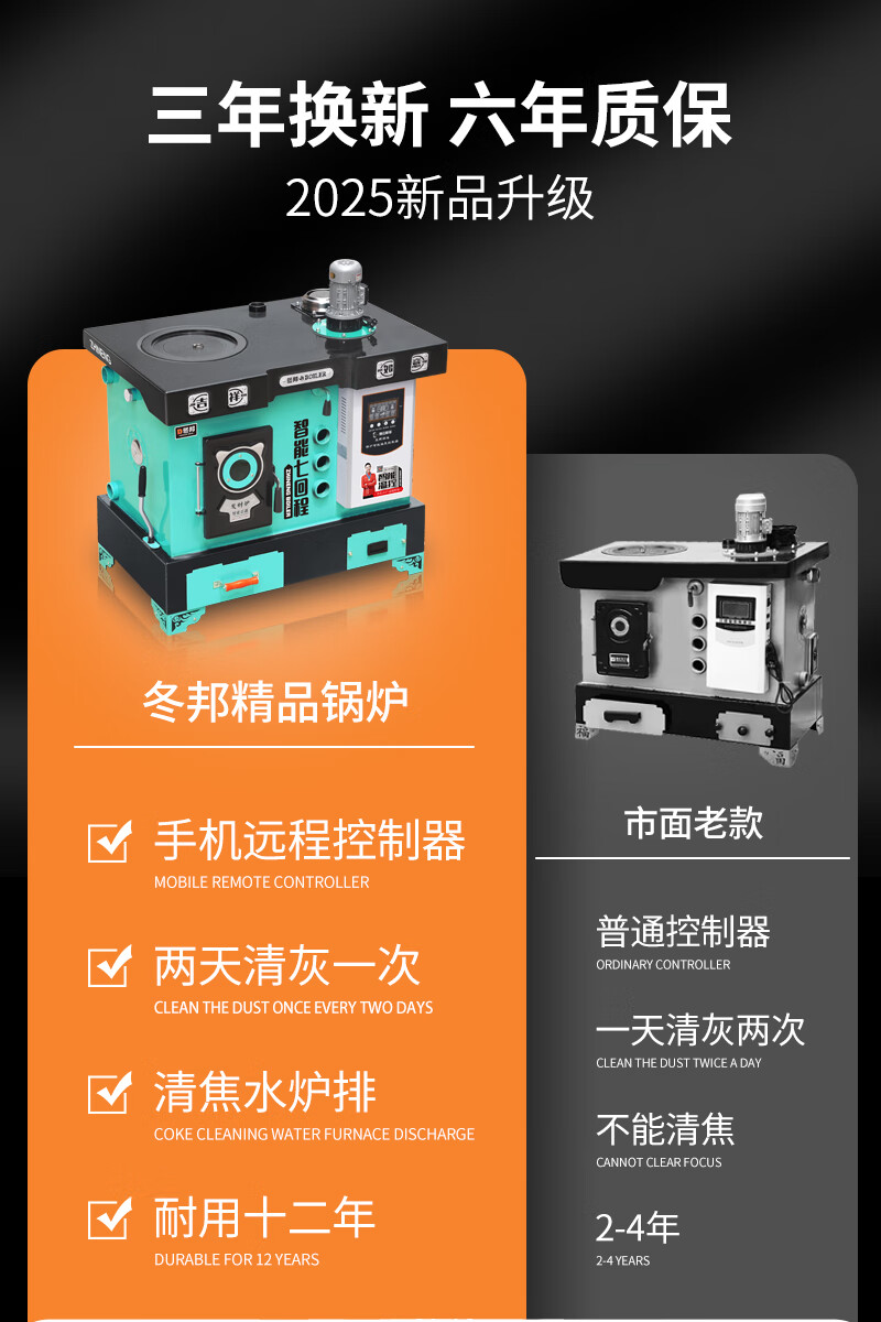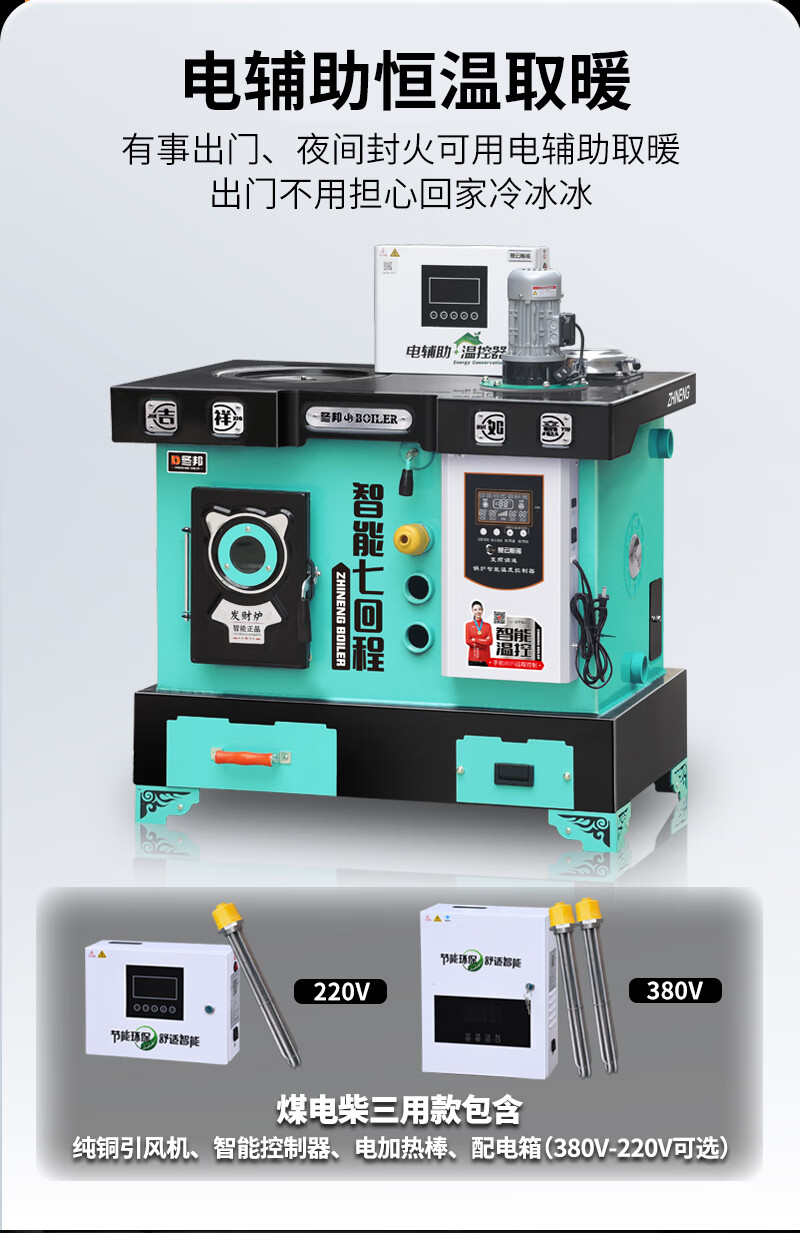 冬邦智能数控锅炉家用节能多功能数控锅炉取暖水暖煤电锅炉煤柴两用 煤柴两用160#