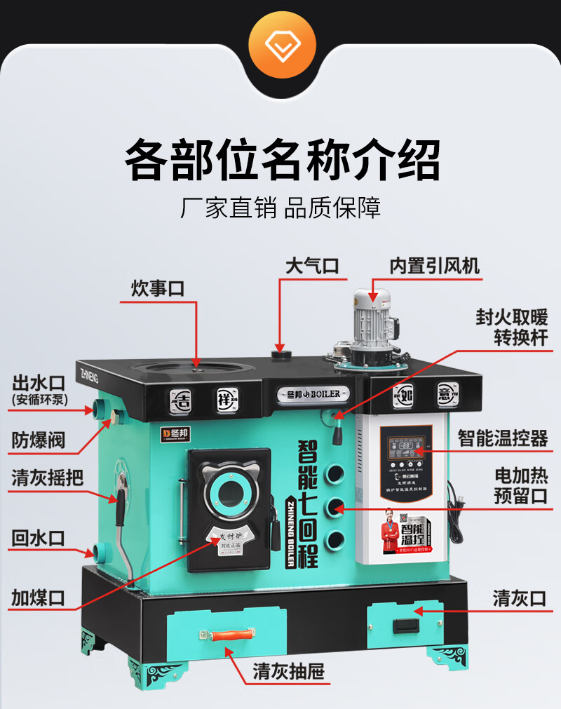 冬邦反烧环保锅炉数控采暖炉家用燃煤地暖暖气养殖水暖多回程反烧锅炉 260#【耐腐精钢】