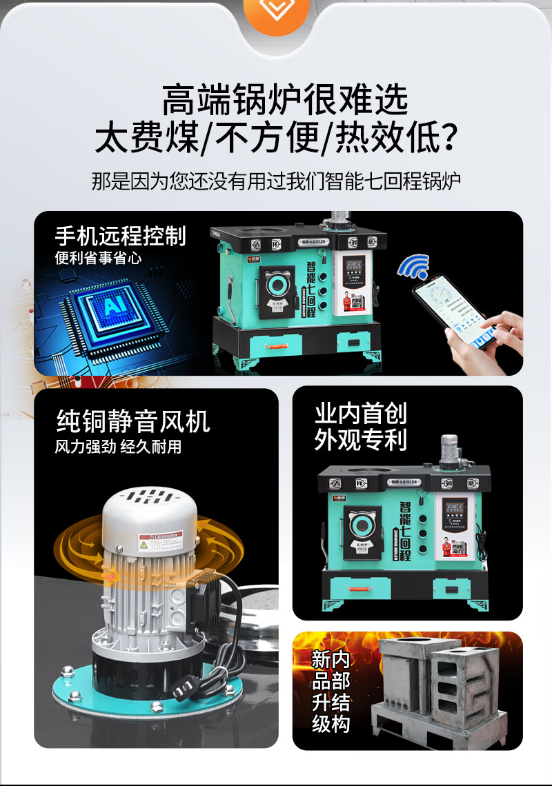 靠森数控锅炉煤电柴七回程反烧通炕家用取暖炉地暖养殖水暖炉具 260#数控七回程【煤柴款】