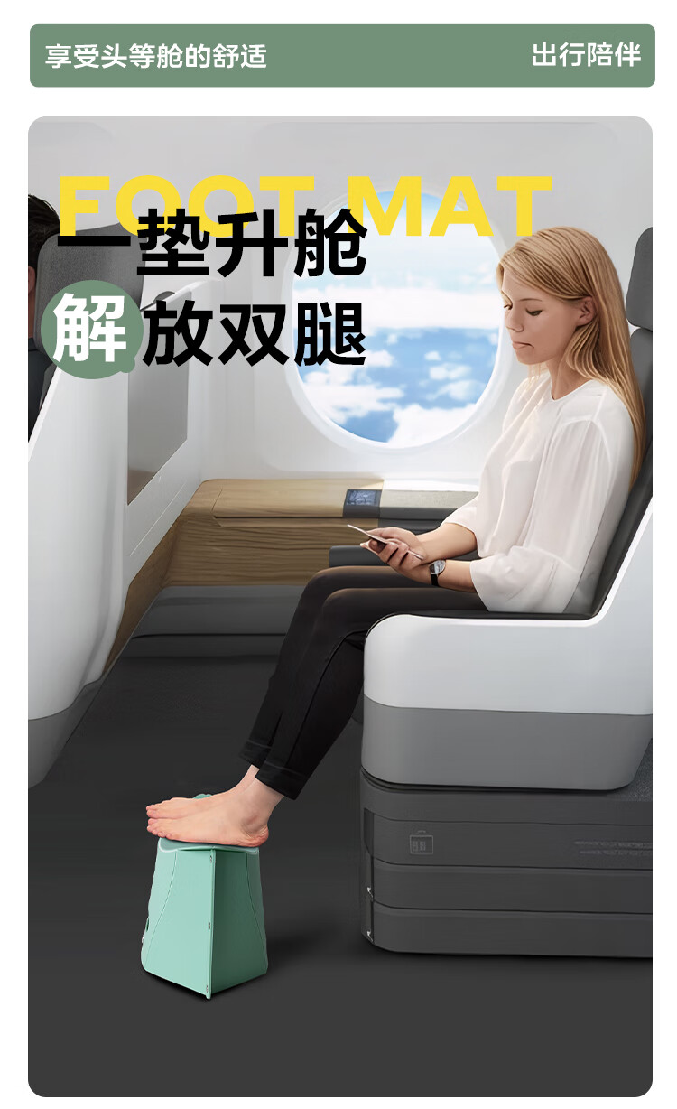 凌云鹤飞机脚垫折叠脚托睡觉神器便携高铁旅行长途必备火车歇脚垫 浅绿色飞机折叠脚垫 【便携收纳 结实耐用】