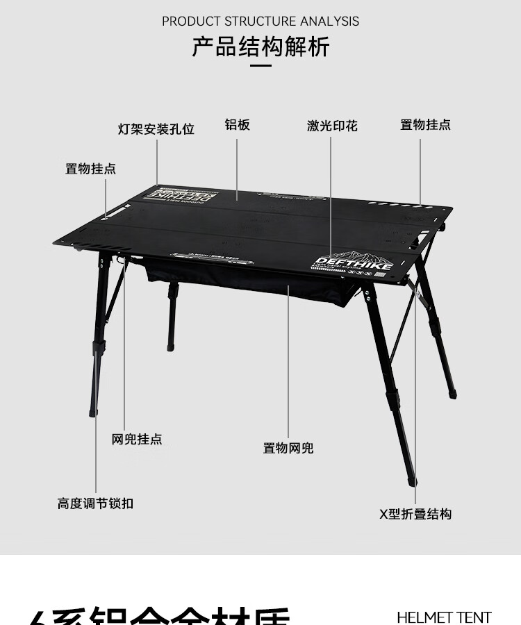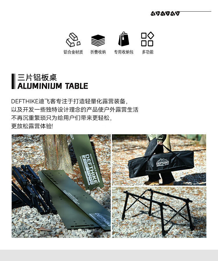迪飞客战术三片桌户外露营可折叠铝板桌子便携升降IGT拓展蛋卷桌 丛林绿三片桌