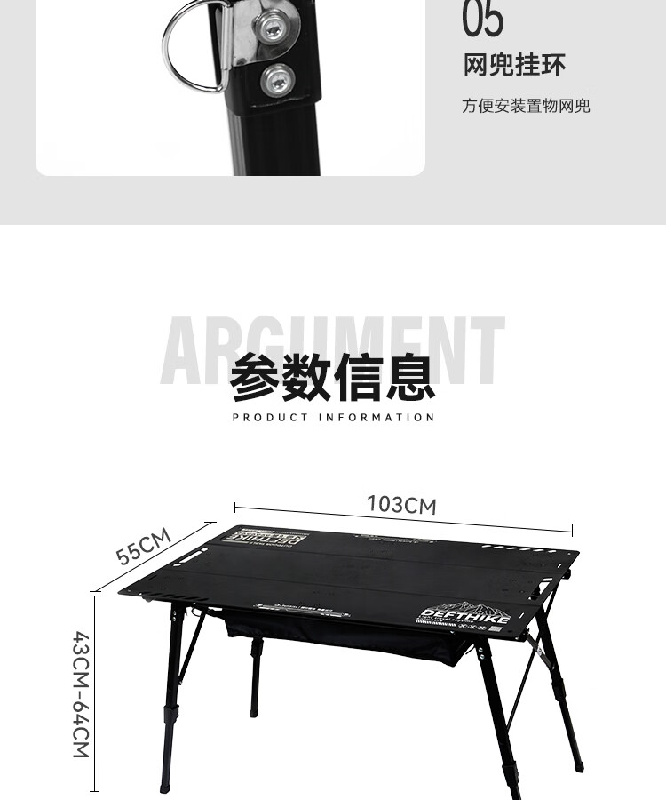迪飞客世纪桌户外露营桌子便携战术IGT桌三单元3+5可拼接拓展铝合金野餐 拓展条-黑色