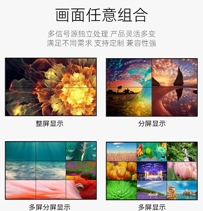 这款拼接屏效果非常出色!超窄的边框设计让多屏拼接后的视野几乎浑然一体,视觉冲击力很强。无论是用于监控大屏显示多路信号,还是会议室展示数据图表,画面都清晰锐利,色彩均匀。运行稳定,调试简单,大大提升了工作效率和专业形象,物超所值!