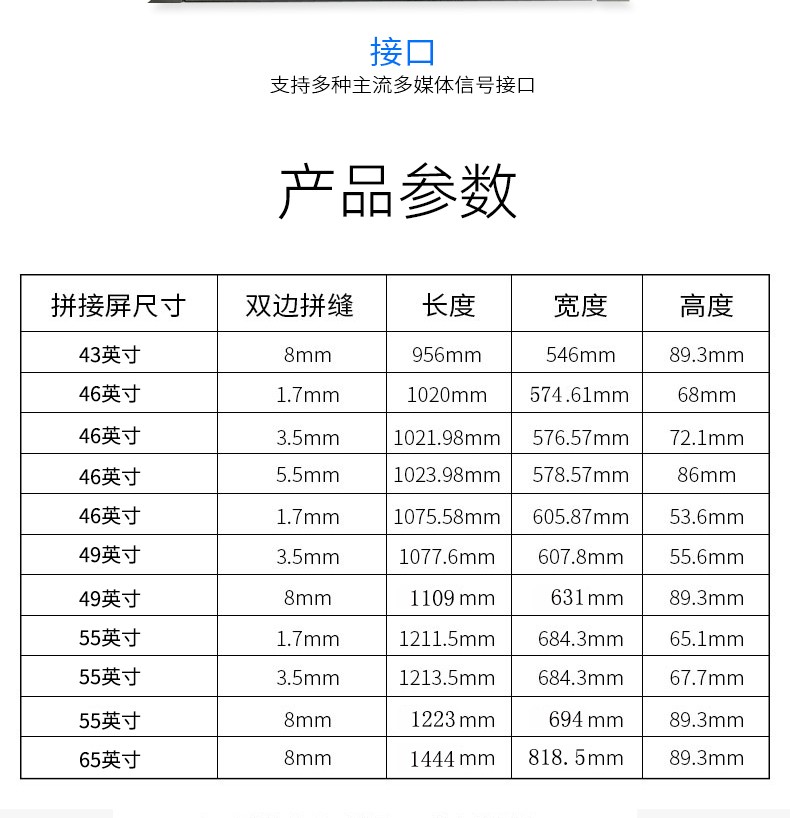 LG京东方液晶拼接屏46 49 55 65英寸高清显示大屏幕会议室电视墙屏幕电子广告屏 46寸0.88mm拼接屏