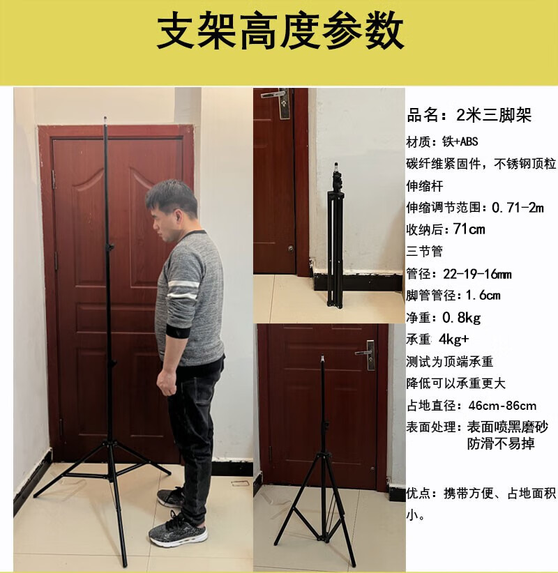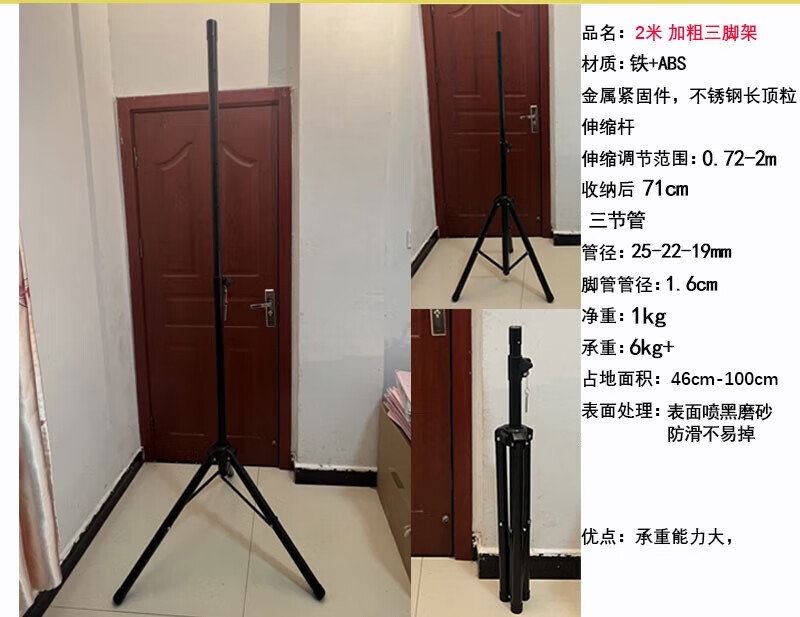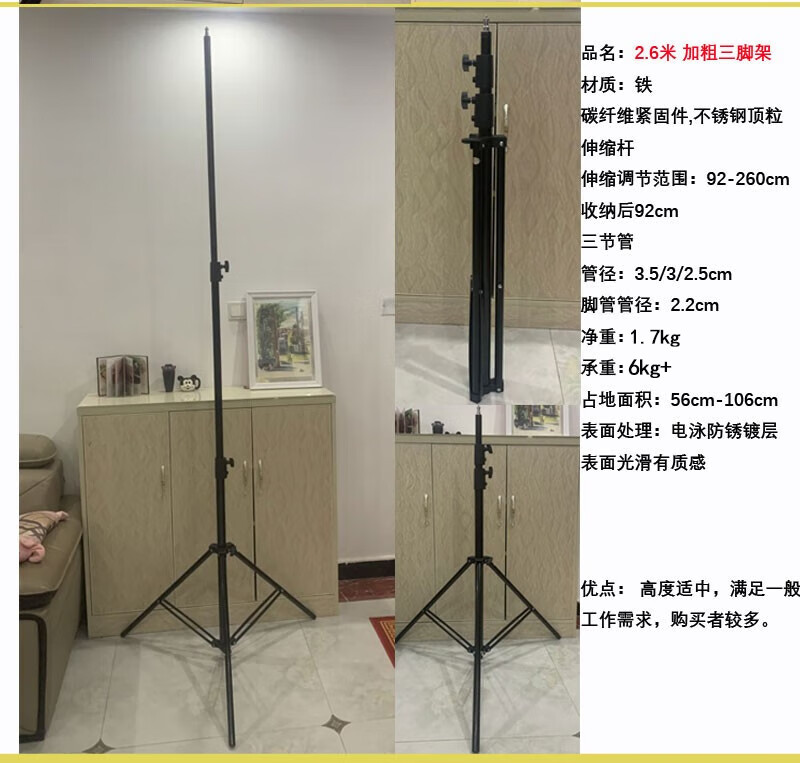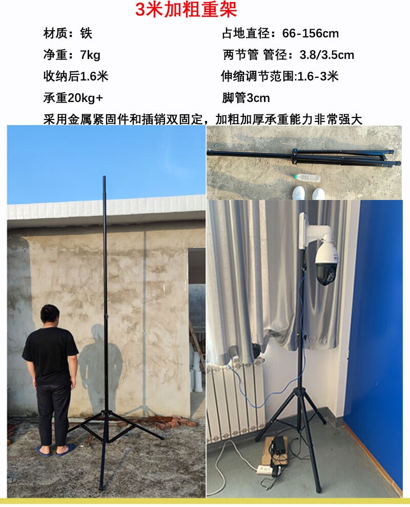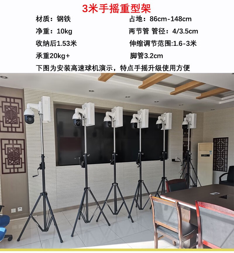 瑾声安防监控摄像头通用落地支架可升缩三脚架 枪机球机摄像机室内外监控万向支架 监控器移动立杆支架 2.6米加粗7型侧装款【1-2.6m】