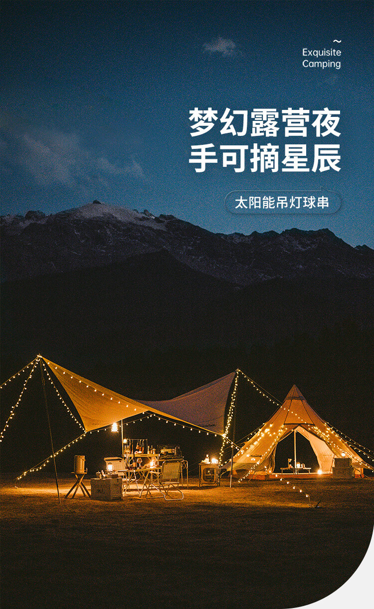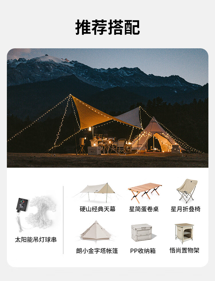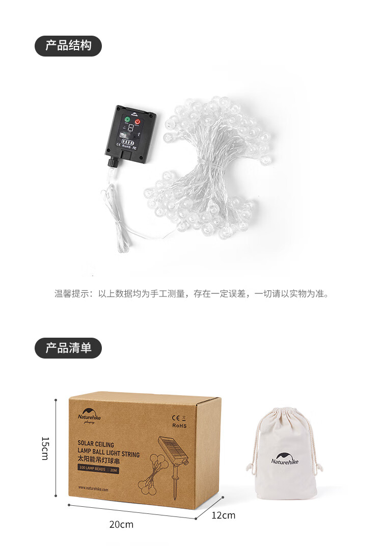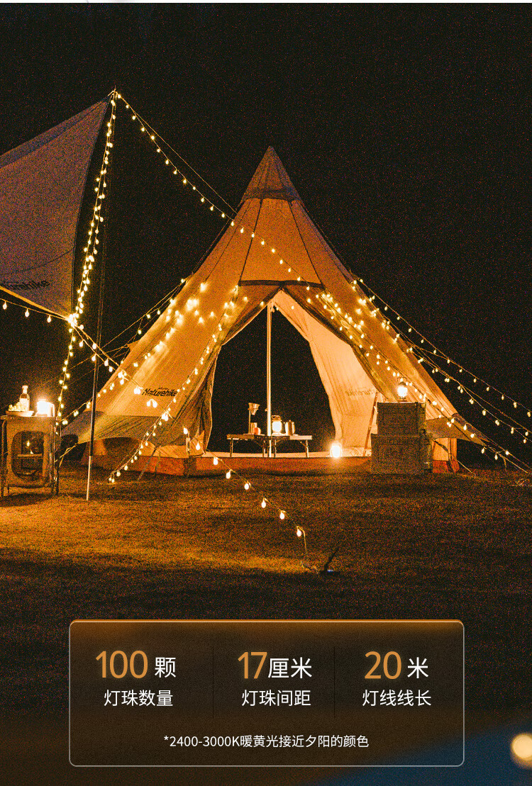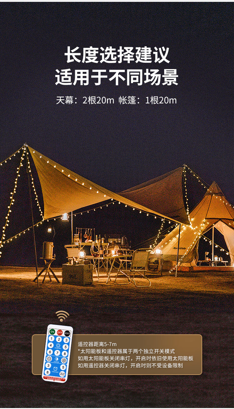 NatureHike挪客串灯氛围灯户外太阳能吊灯 露营灯帐篷灯天幕装饰灯带 20米100灯(太阳能板)