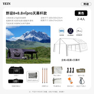 野迎8+8.8㎡pro营地充气帐篷春夏户外露营过夜装备一室一厅防雨帐篷 黑色 天幕杆款全套