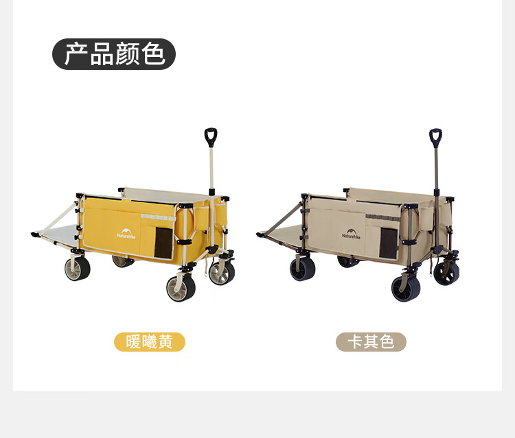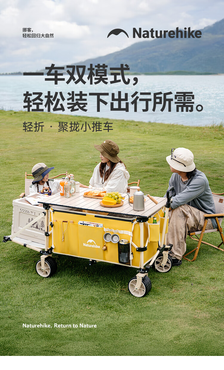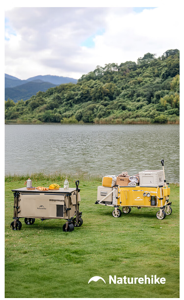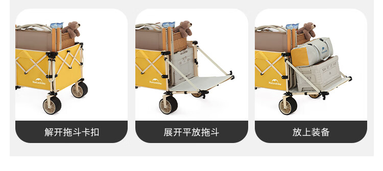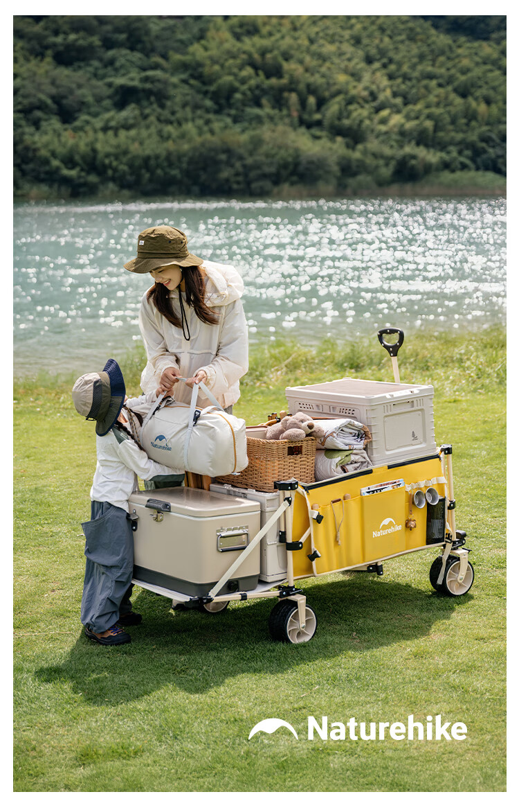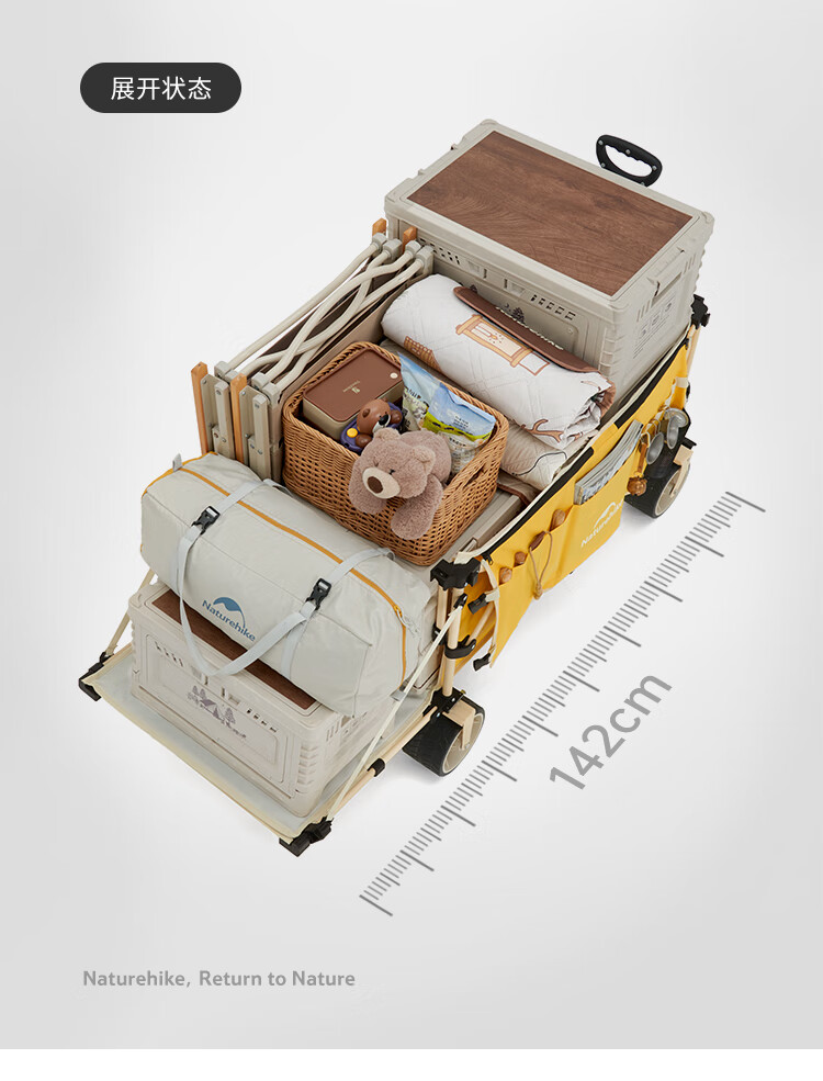 Naturehike挪客露营车便携可折叠推车后开营地车拖车野餐车聚拢收纳手推车 暖曦黄/150+90L 240L 有刹车
