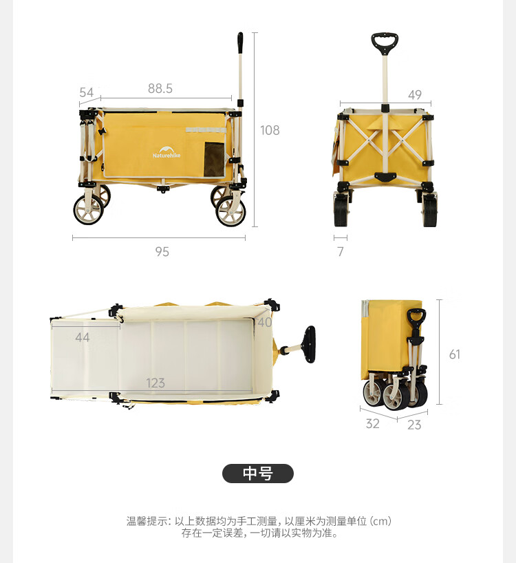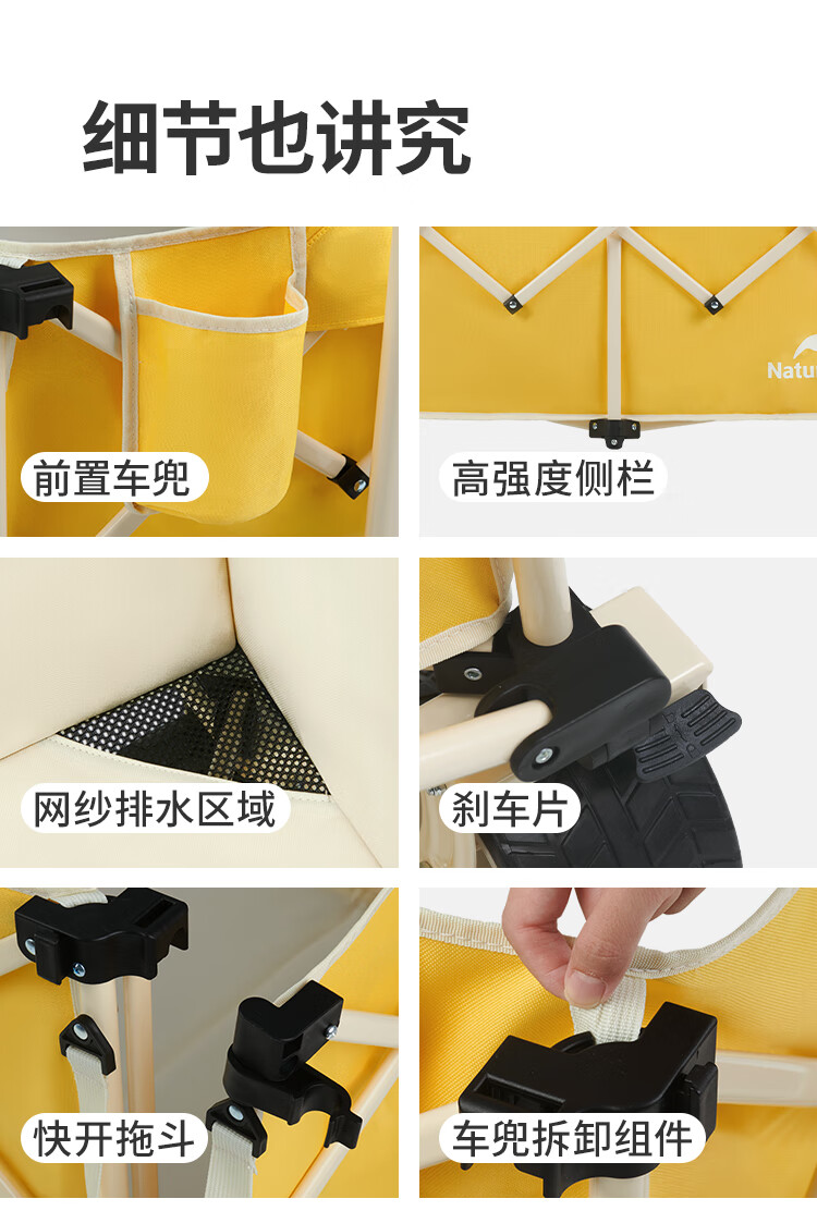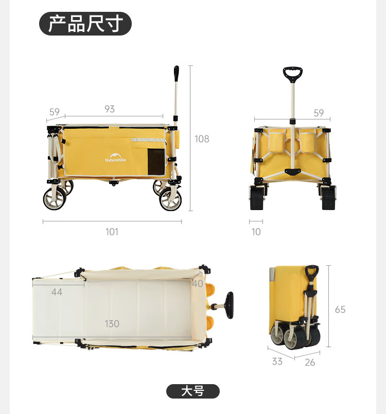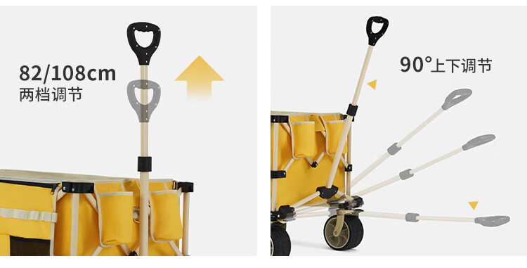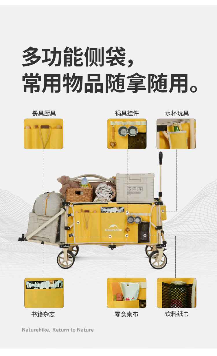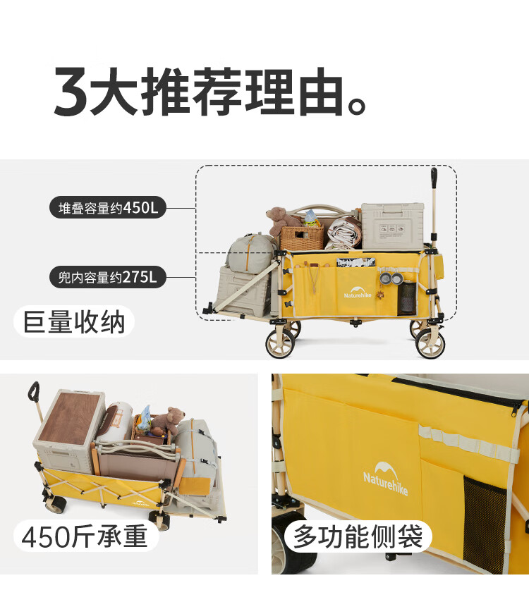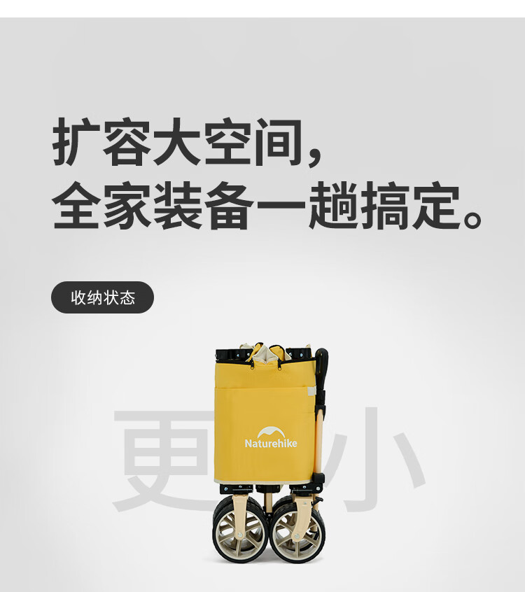 Naturehike挪客露营车便携可折叠推车后开营地车拖车野餐车聚拢收纳手推车 暖曦黄/150+90L 240L 有刹车