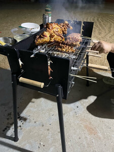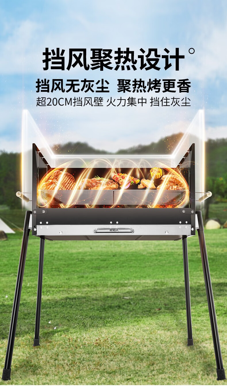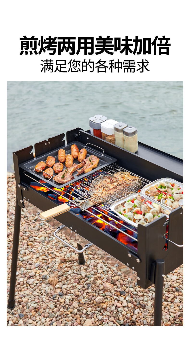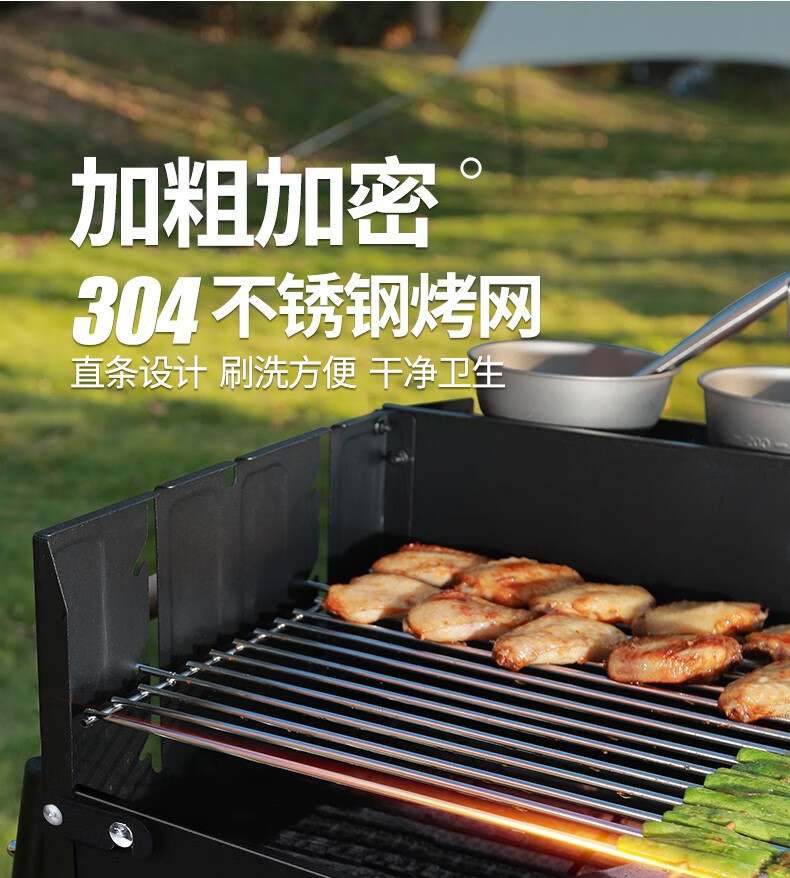 便携性能:折叠起来很方便,也不占空间 炭火烧烤也非常集中,非常耐烧,炉子竹签都不会烧到,烤串也非常快 用料材质:炉子很厚实尤其是烤架挺粗的不锈钢 套餐带的一系列东西非常多,啥都不缺了,尤其是烤鱼夹超级好用,烤鸡翅豆腐啥的都可以