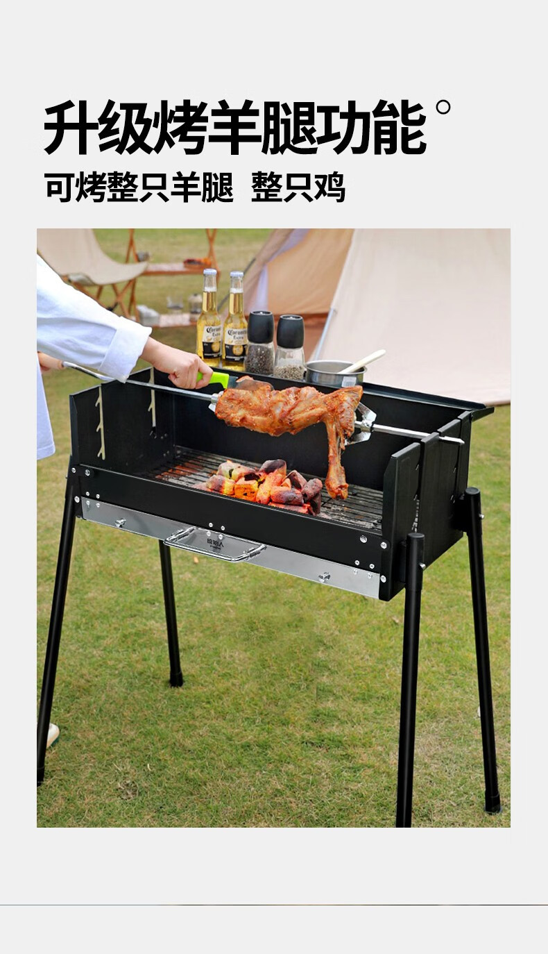爵仁烤羊腿炉子羊腿叉家用碳烤架子户外聚会烤羊排野外烤羊肉串商用烤 60cm烤炉+羊腿叉+支架