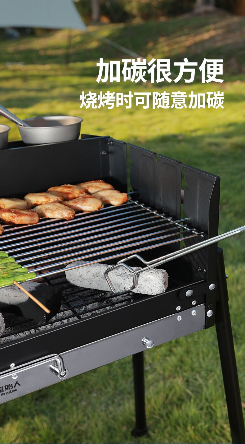 原始人烧烤架户外烧烤炉家用庭院烤肉架木炭便携碳烤炉子烧烤工具全套 标准套餐:免安装烤炉+3斤碳