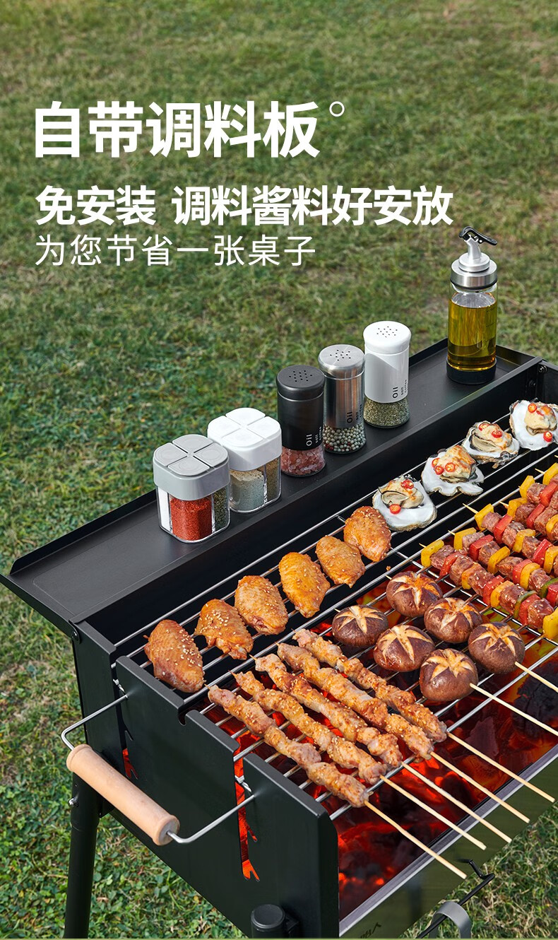 格术户外不锈钢烧烤炉家用bbq便携可折叠烧烤架木炭烧烤炭烤炉烧烤箱 大号省心组合装-烧烤工具8件含5斤碳