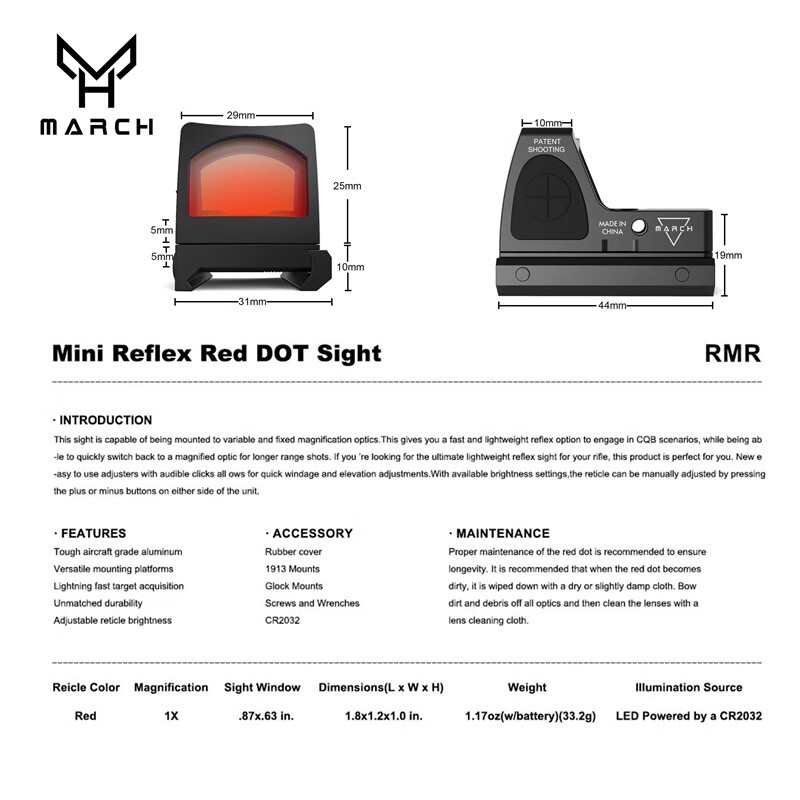 MARCH红点全息瞄准镜五米归零RMR反射光学瞄20MM卡槽带底座瞄镜黑色 黑色