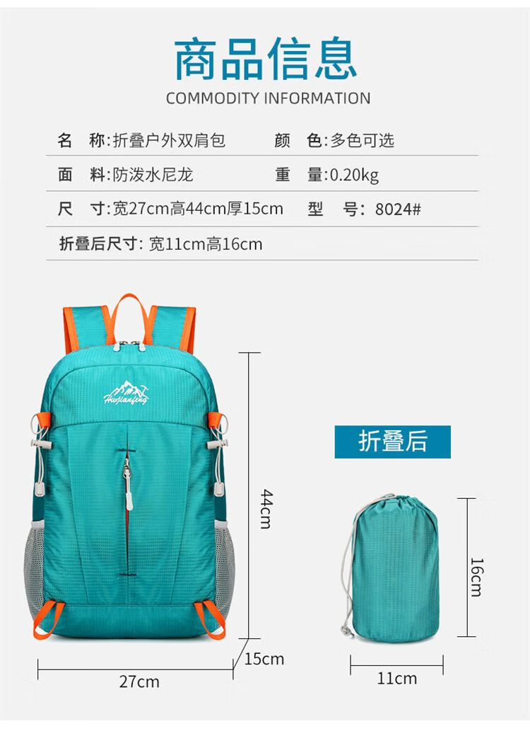 驰驴户外登山运动轻薄款双肩背包可折叠徒步露营团队郊游活动背包 可折叠包 绿色