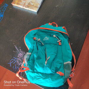 收到了京东物流,很快,这个双肩背非常小,折叠起来,但是打开很大,有个红边还可以的,嗯,比较轻巧,用着也方便,正好需要这么一个包价格合适,所以就满了