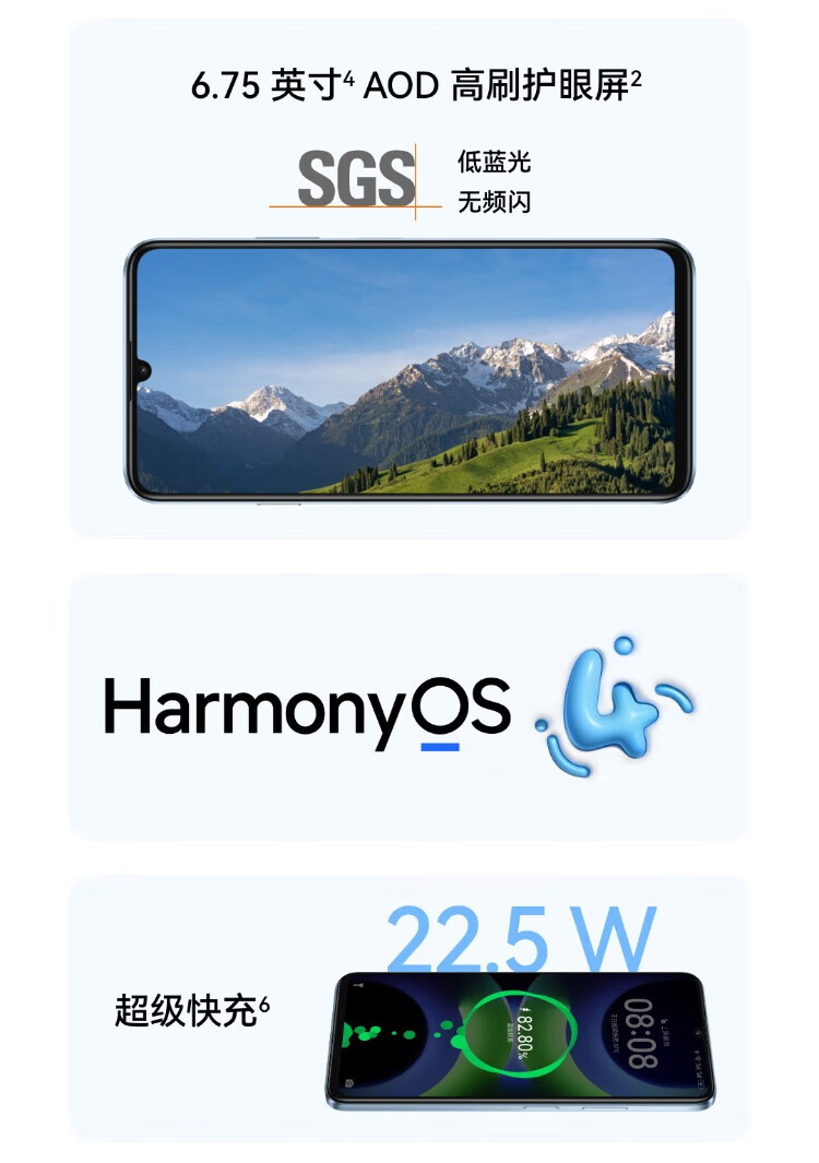 华为 70S 新品畅享旗舰手机 6000mAh大电量长续航 6.75英寸 畅享新品华为 70S 手机 曜金黑 8GB+256GB