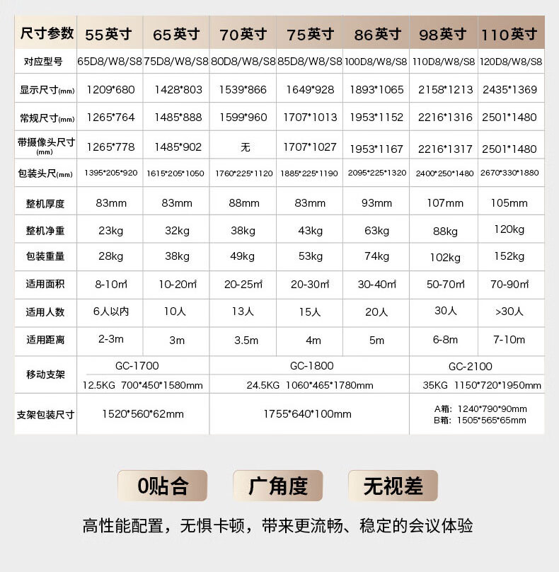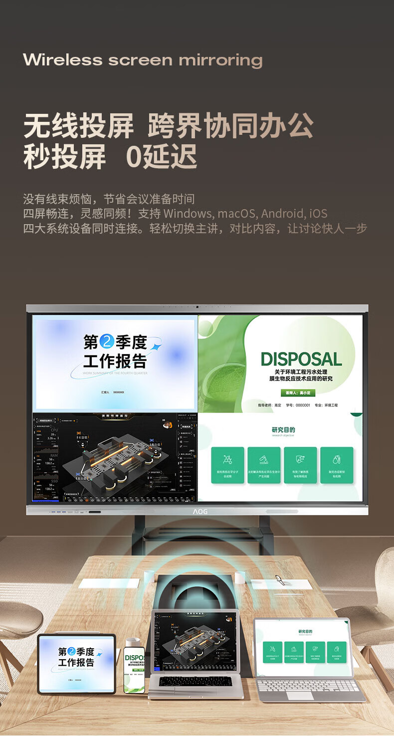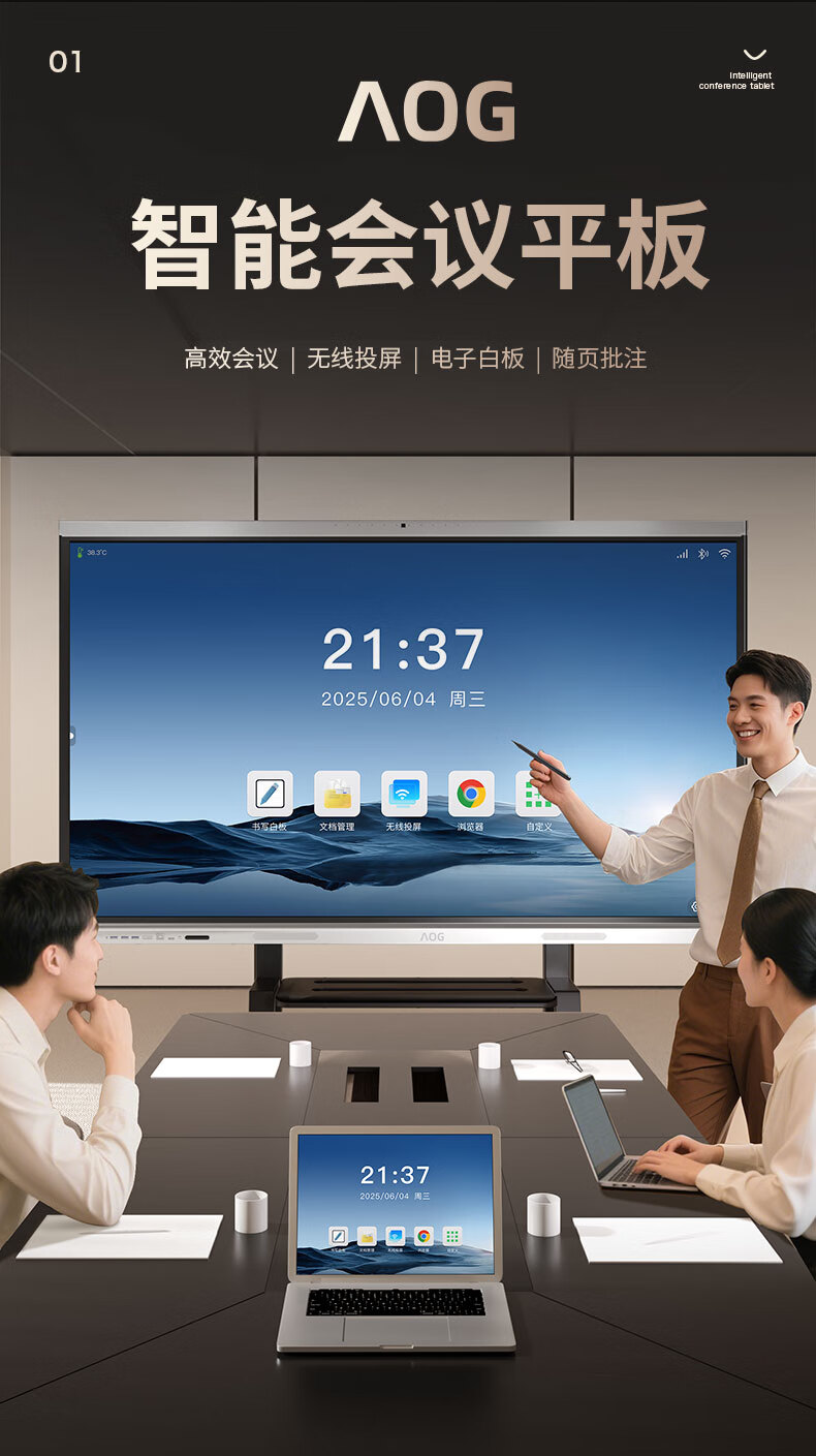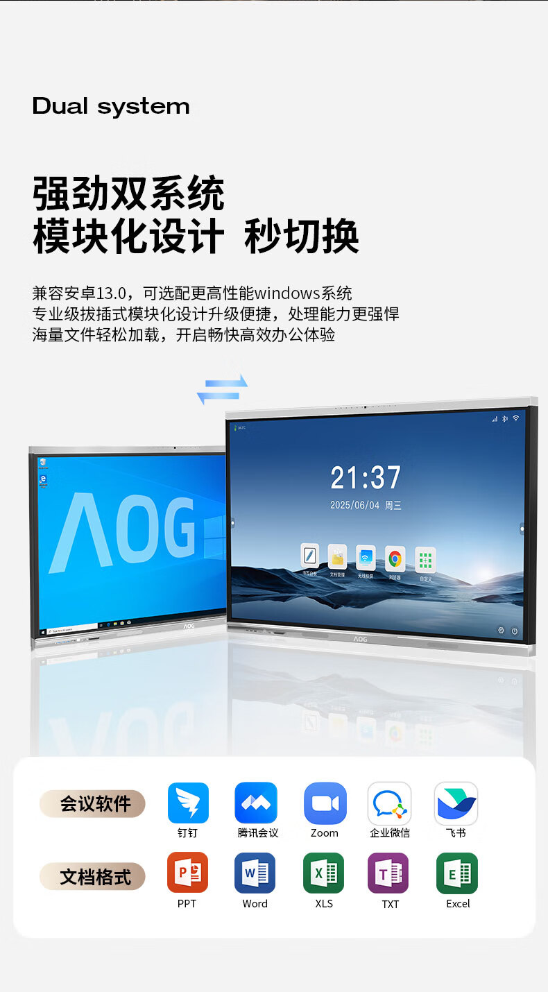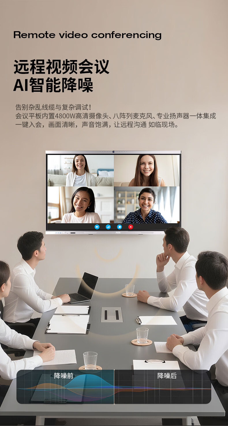 AOG会议平板一体机多媒体触控屏智能电子白板交互式互动屏会议室大屏远程视频会议解决方案 85S8-远程视频会议款【双系统内置摄像头】 移动推车