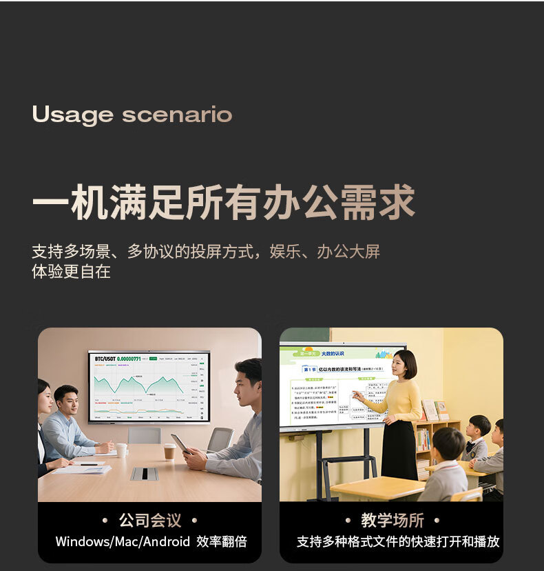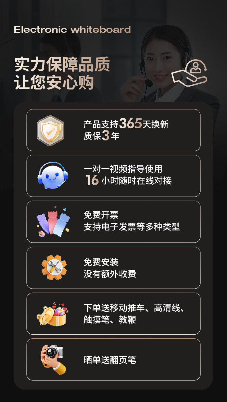 公司买来开会用的,可以直接写,还可以保存,比传统的白板好用多了,还可以直接投屏,很不错,这个价格也合适,直接安排师傅上门安装,方便快捷,性价比非常高