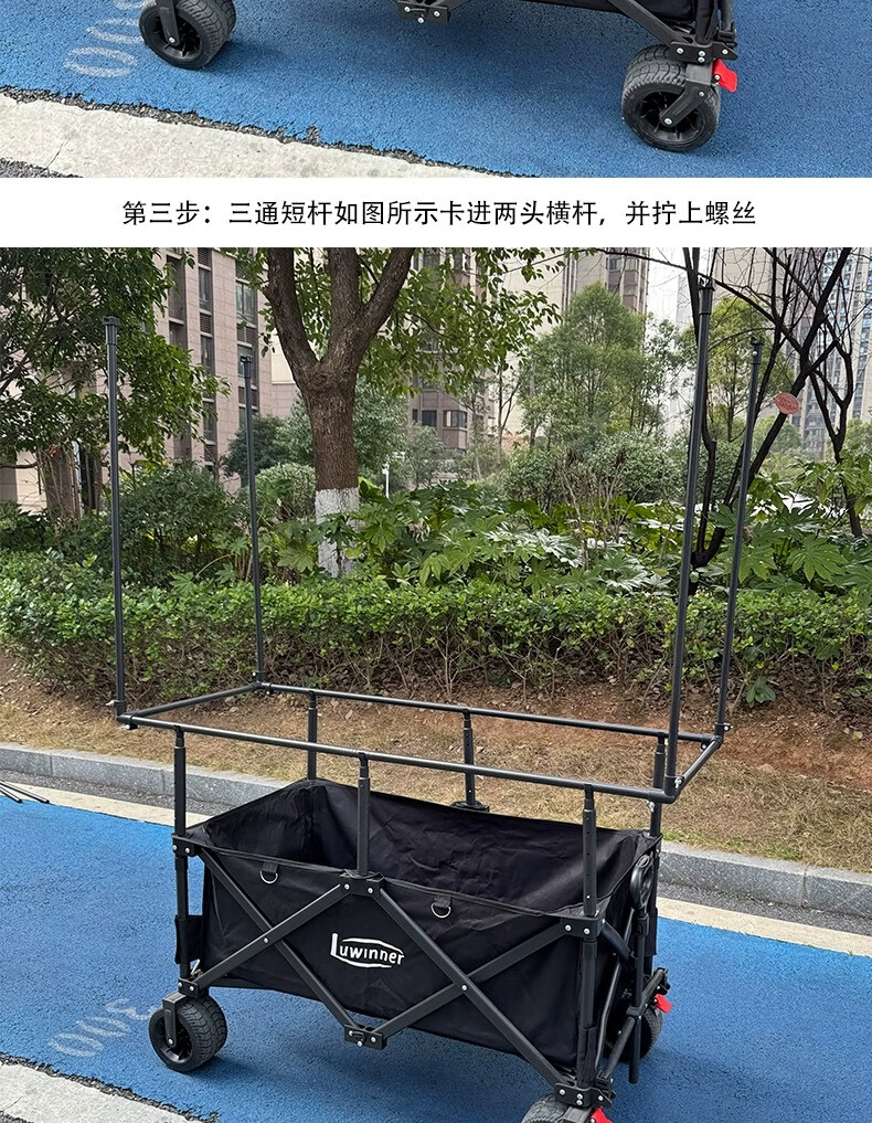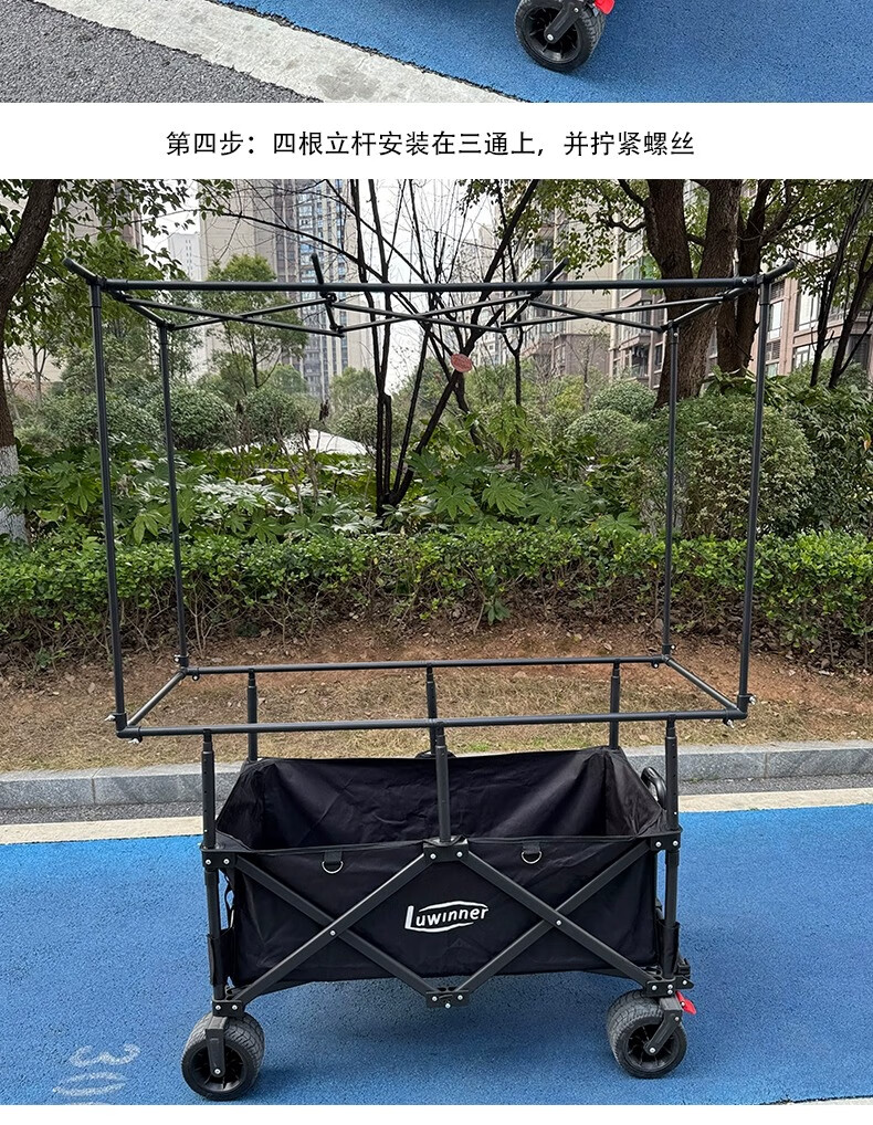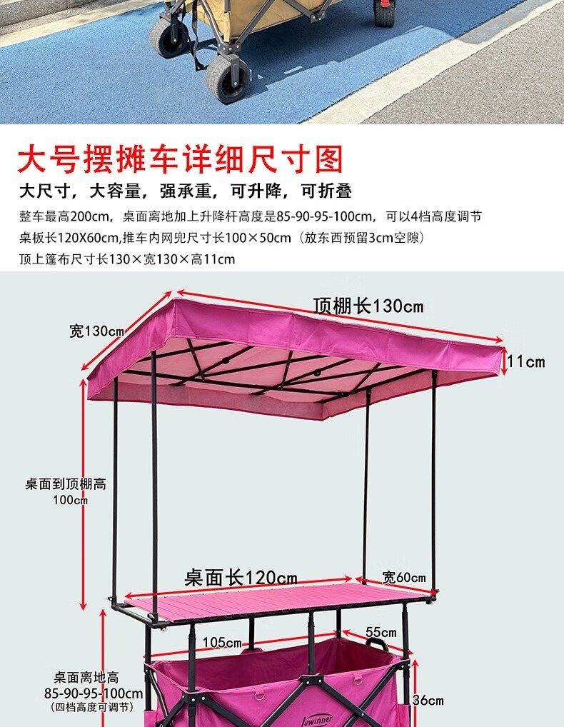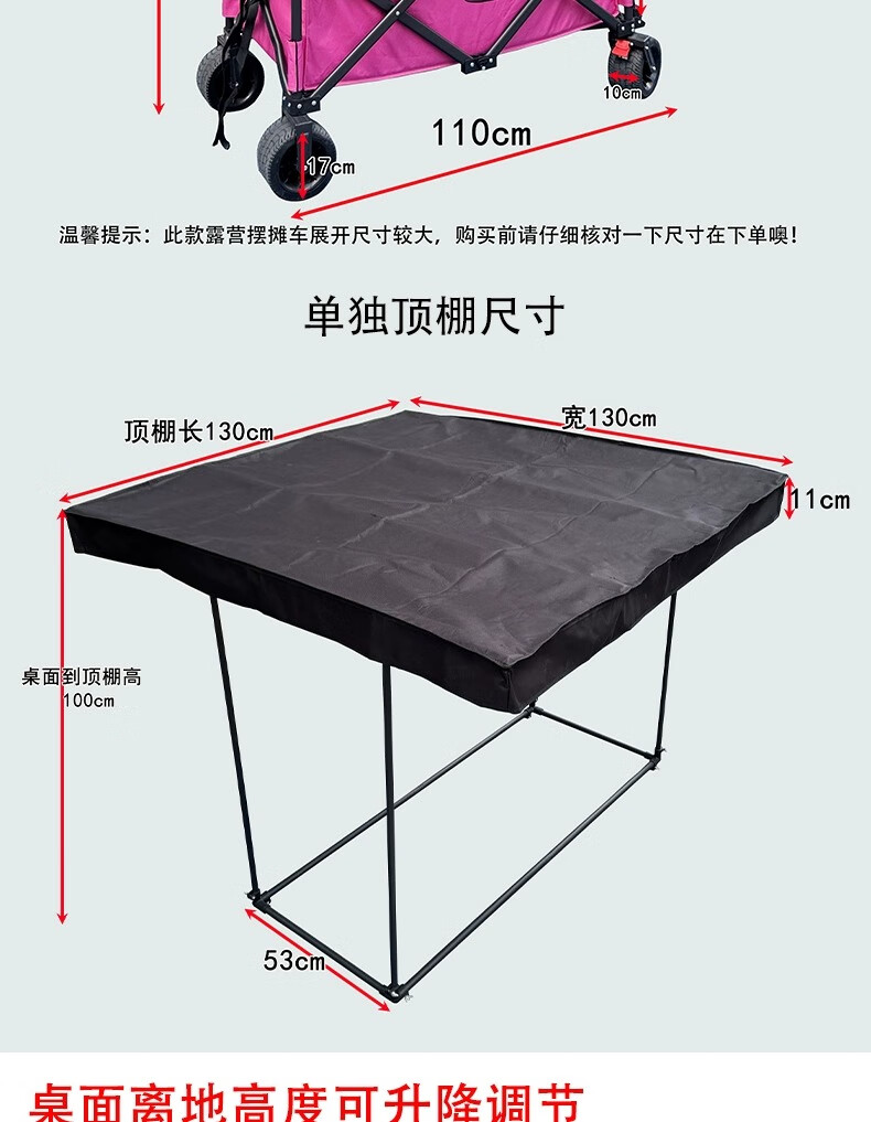 大号露营车摆摊车夜市小推车升降桌柠檬茶餐车营地野餐车聚拢折叠 车(黑)+167*60黑色桌+超大棚(黑)