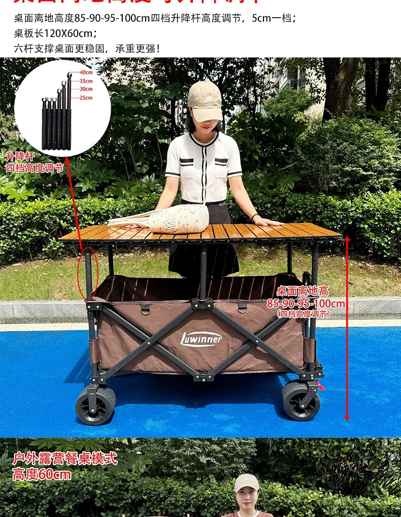 露营摆摊伞车一体车野餐车折叠桌户外移动夜市可升降餐车 【拖斗】巨无霸坦克轮+150升降桌