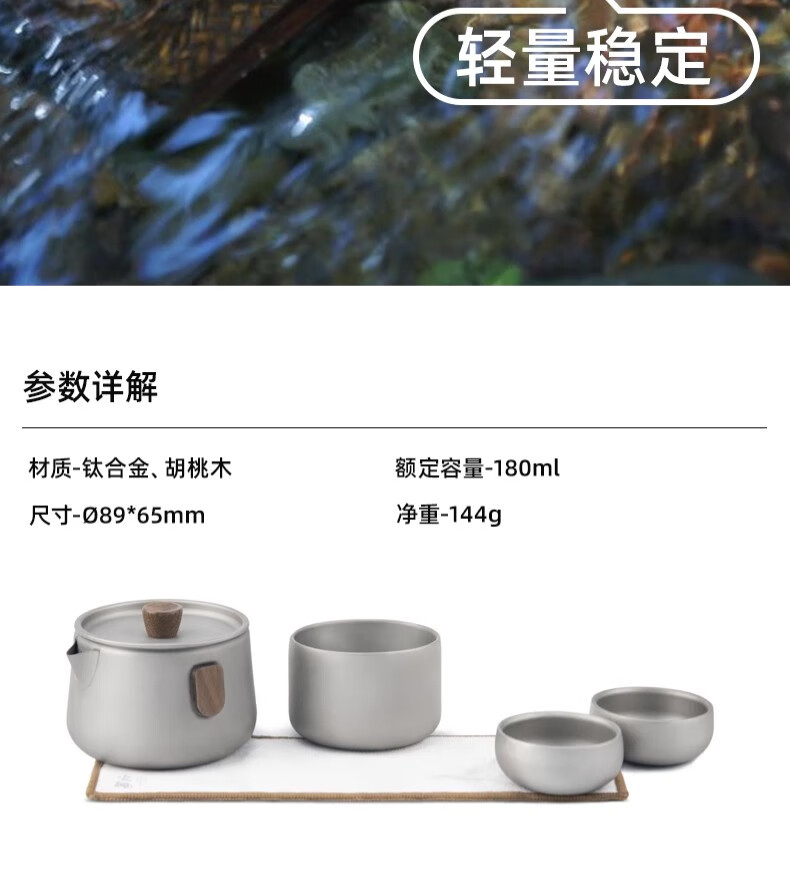 火枫的这款钛茶壶茶杯套装质感真的好,使用起来非常轻便,造型美观,带出去非常出片。 自己在家也可以用来泡茶,收起来完全不占地方