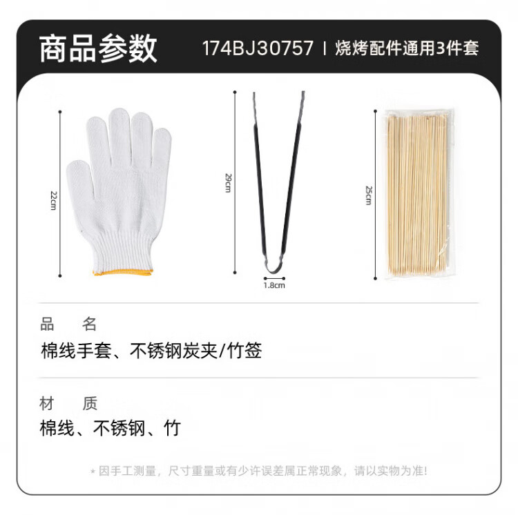 CAMELJEANS户外烧烤炉配件露营野餐烤肉木炭通用便携一套组合手套烧烤夹 【精简套装】三件套,174BJ30757